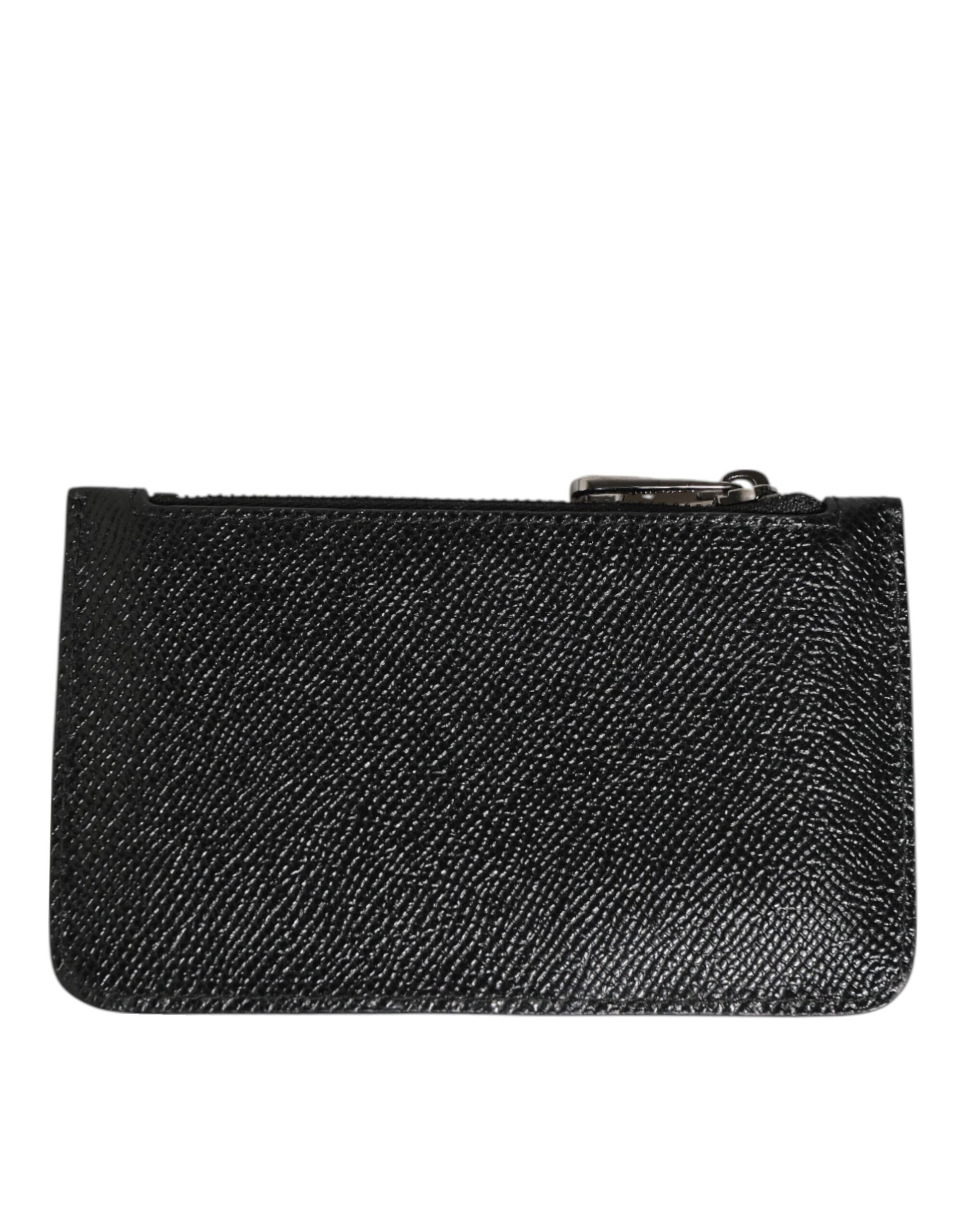 Dolce & Gabbana Black Leather Chain Link Mens Coin Purse Key Clip Holder Wallet