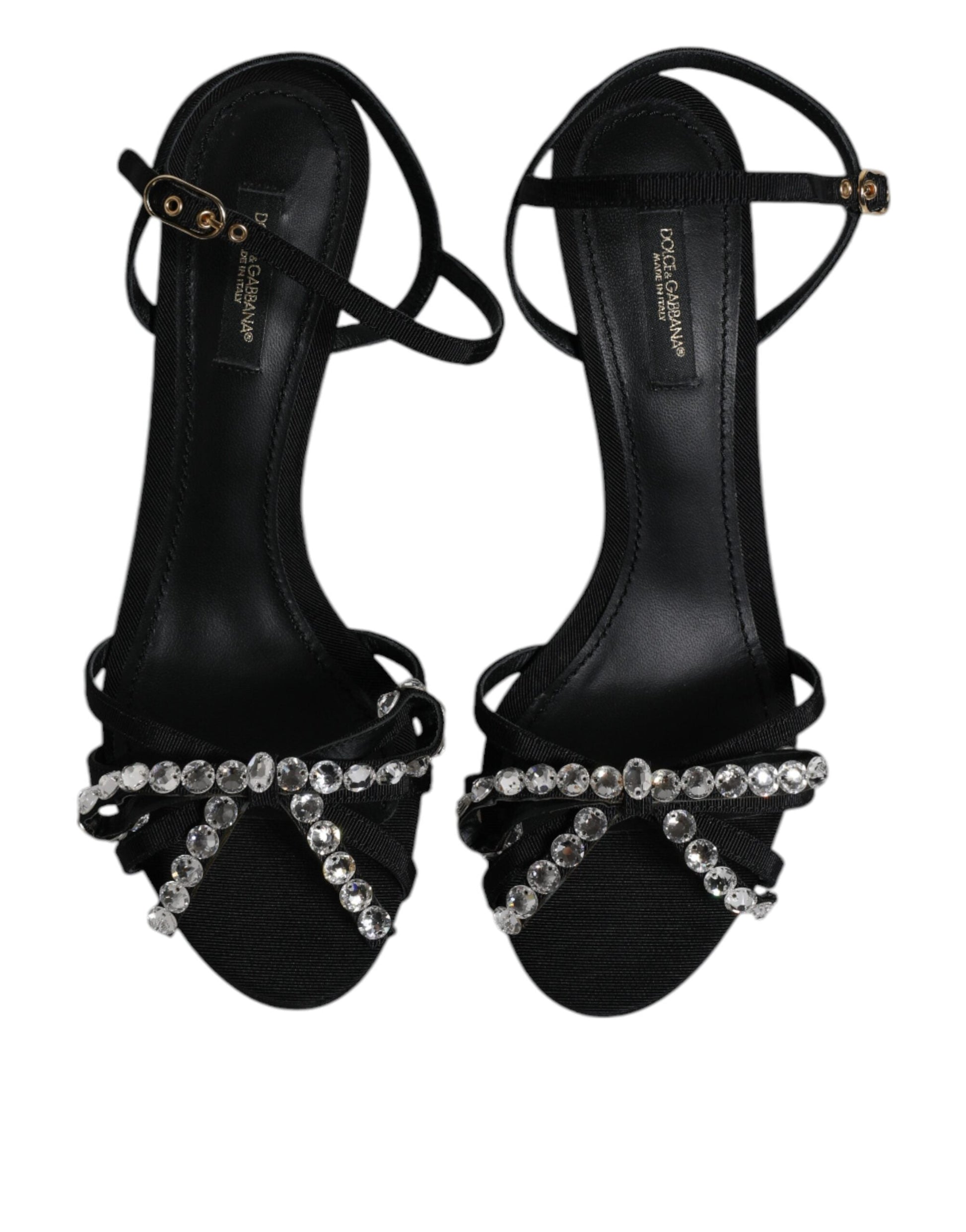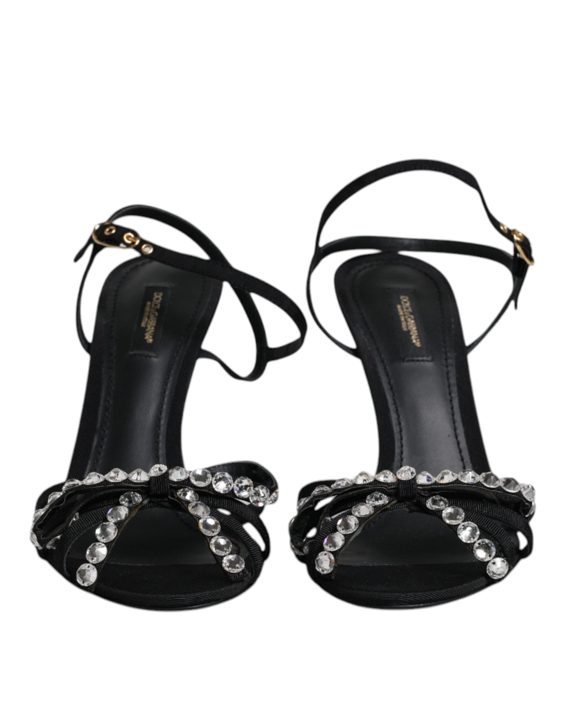 Dolce & Gabbana Black Leather Crystal Bow KEIRA Sandals Shoes