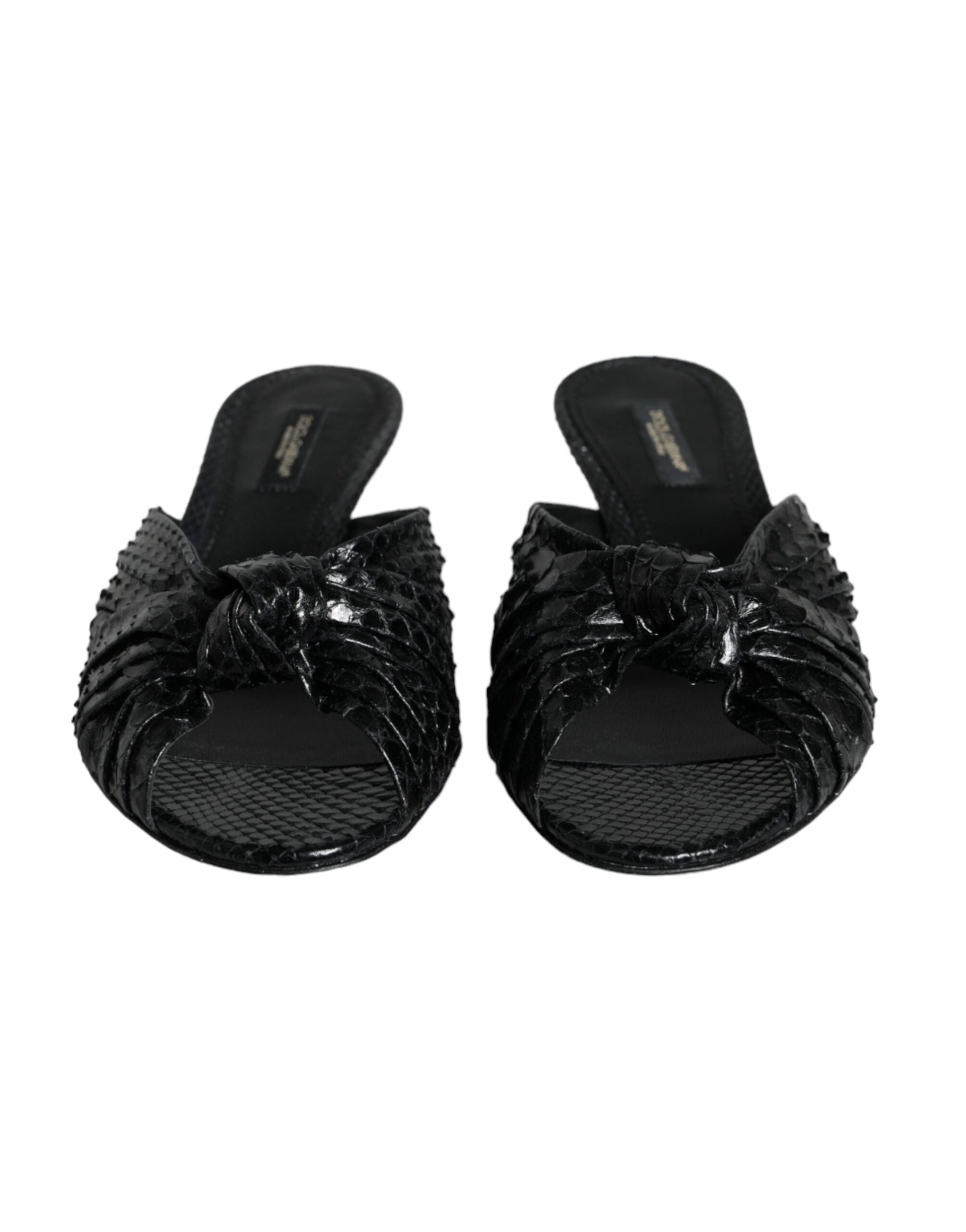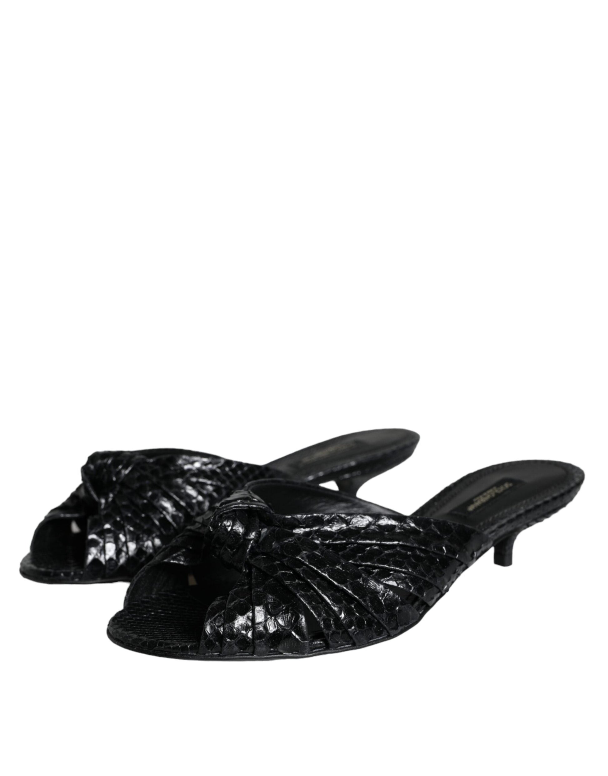 Dolce & Gabbana Black Leather Heels Slides Sandals Shoes