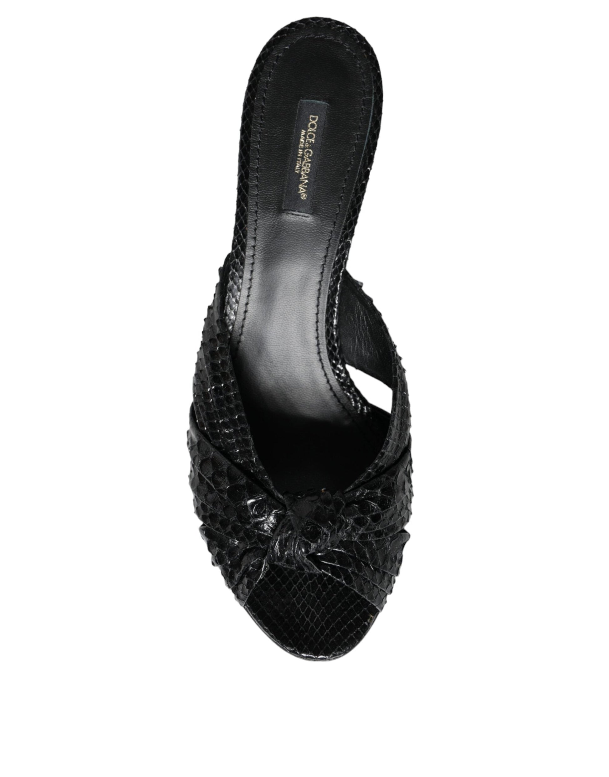 Dolce & Gabbana Black Leather Heels Slides Sandals Shoes