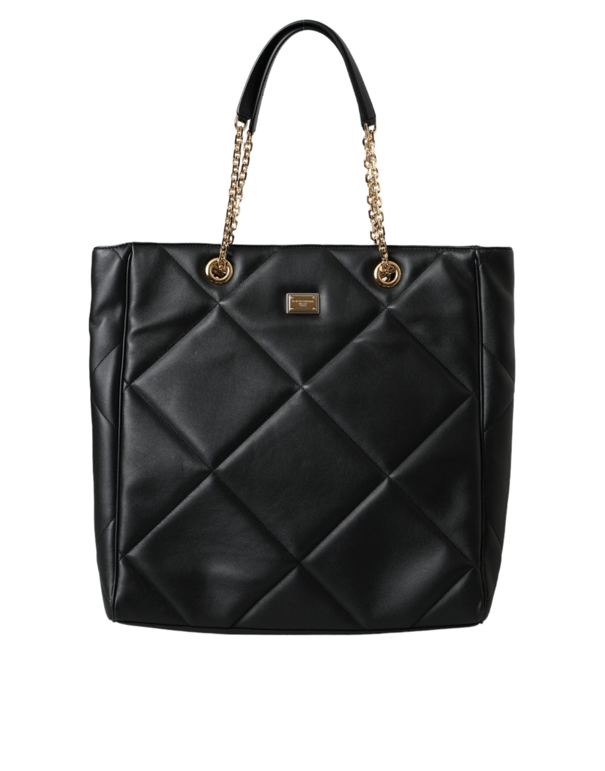 Dolce & Gabbana Black Leather JUNGLE Quilted Shopping Tote Bag
