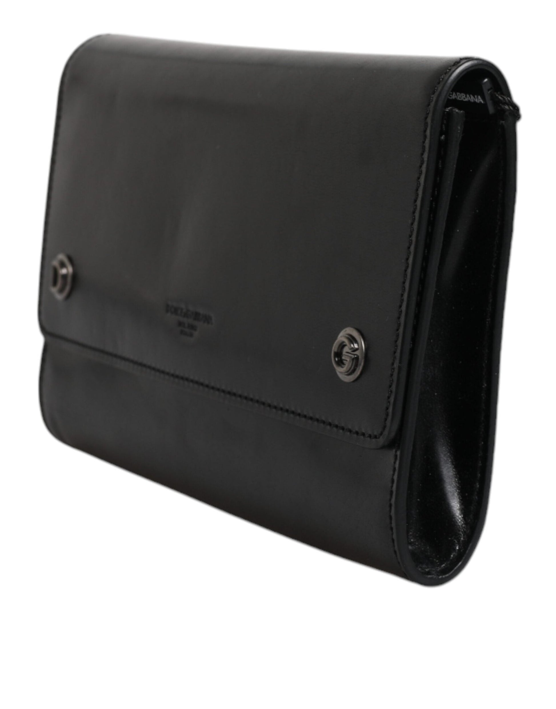 Dolce & Gabbana Black Leather Logo Embossed Crossbody Bag