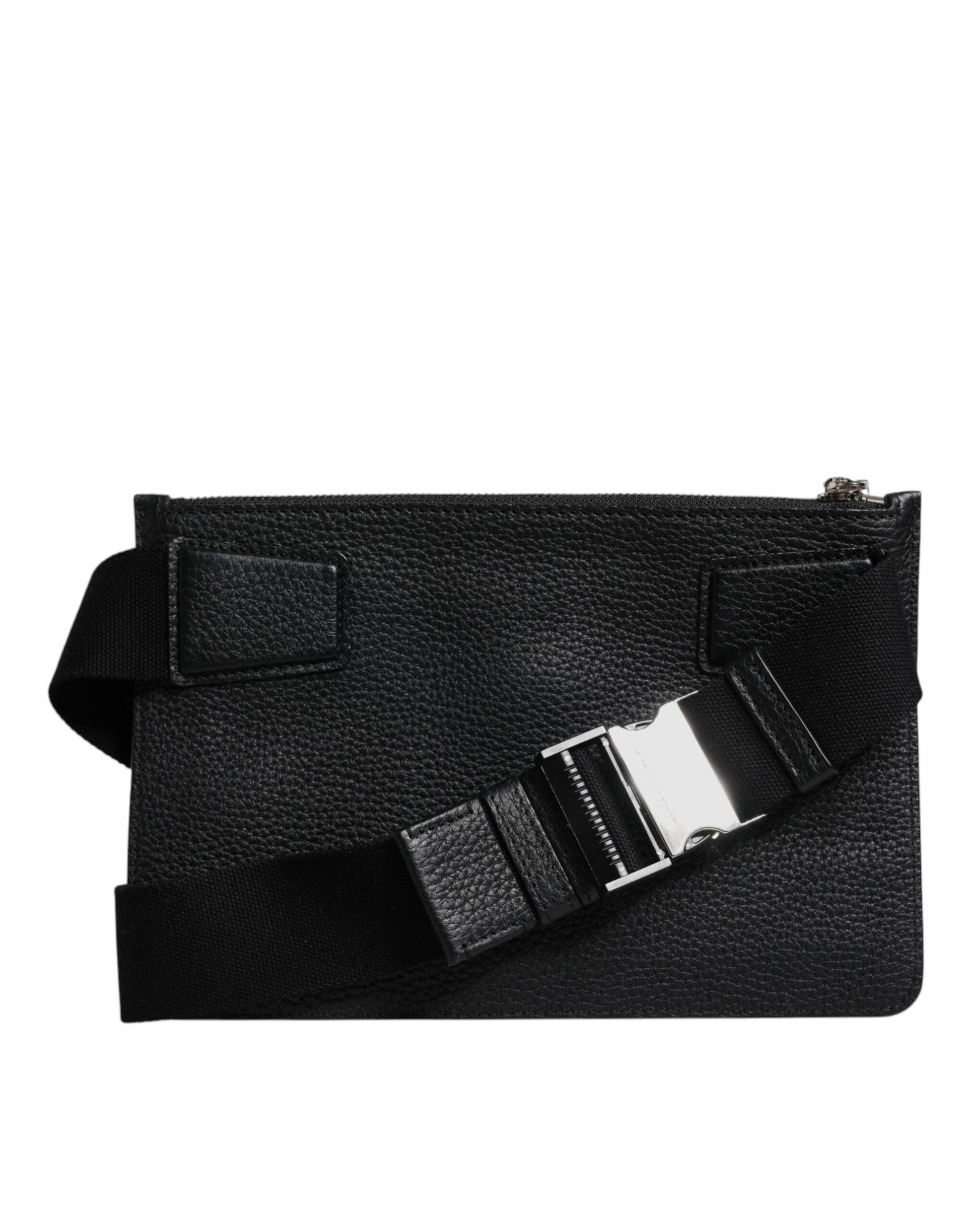 Dolce & Gabbana Black Leather Logo Embossed Waist Fanny Pack Bag