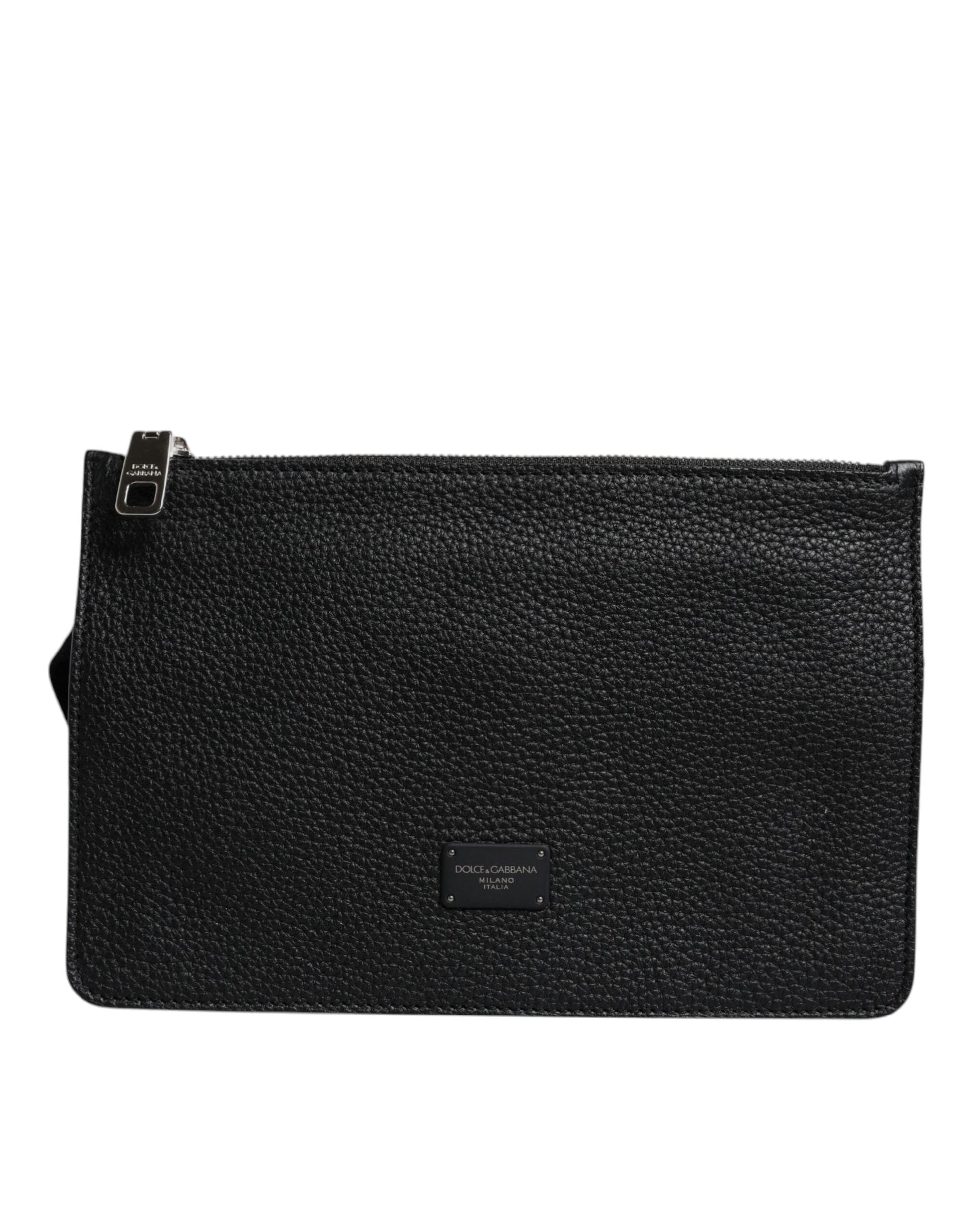 Dolce & Gabbana Black Leather Logo Embossed Waist Fanny Pack Borse Bag