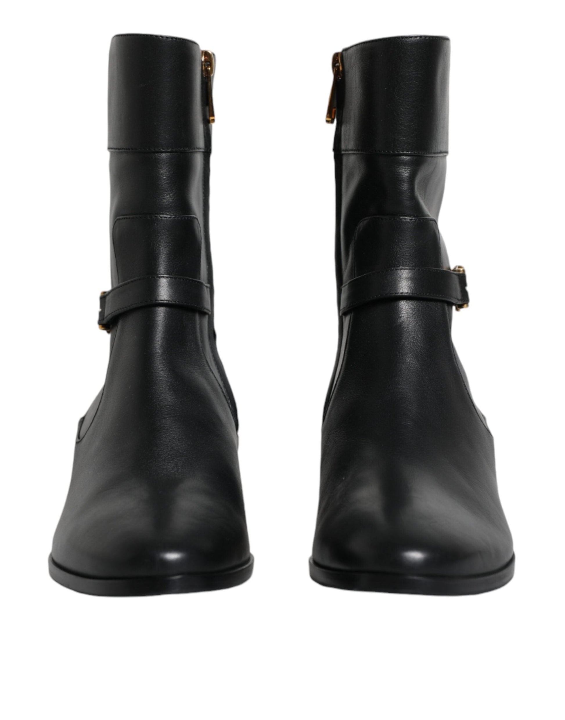 Dolce & Gabbana Black Leather Logo Mid Calf Boots Shoes