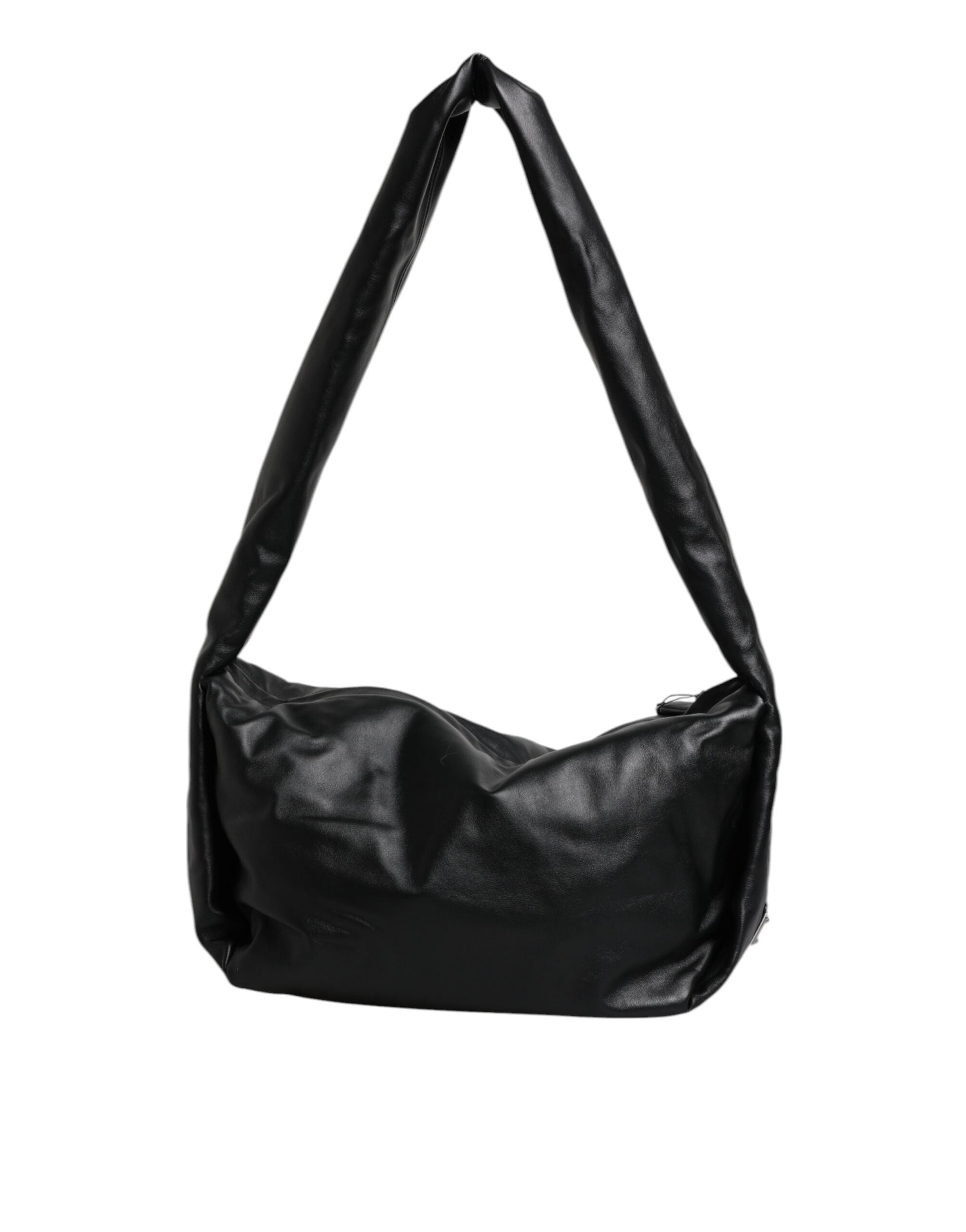 Dolce & Gabbana Black Leather Logo Plaque Shoulder Bag