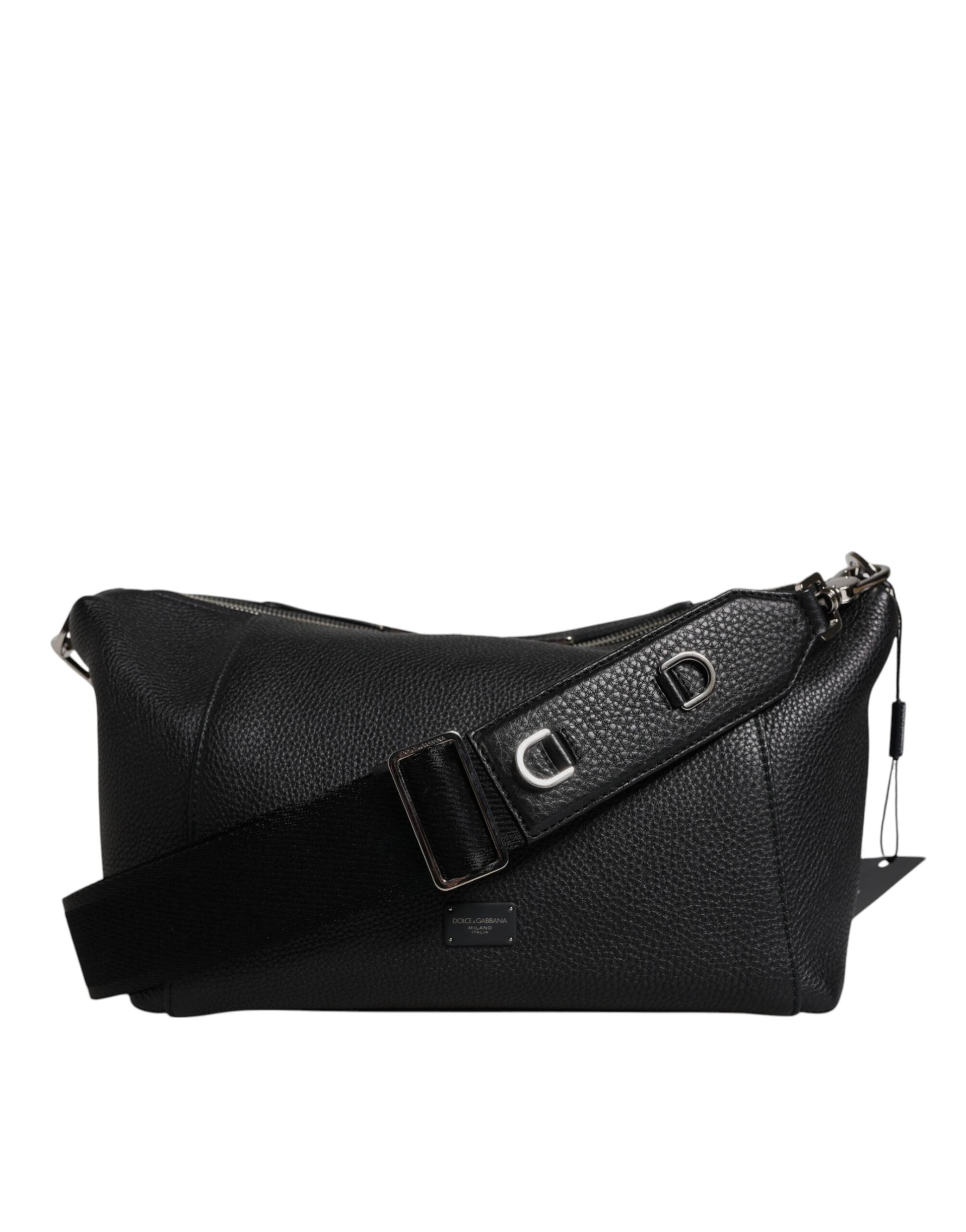 Dolce & Gabbana Black Leather Logo Plaque Shoulder Crossbody Bag