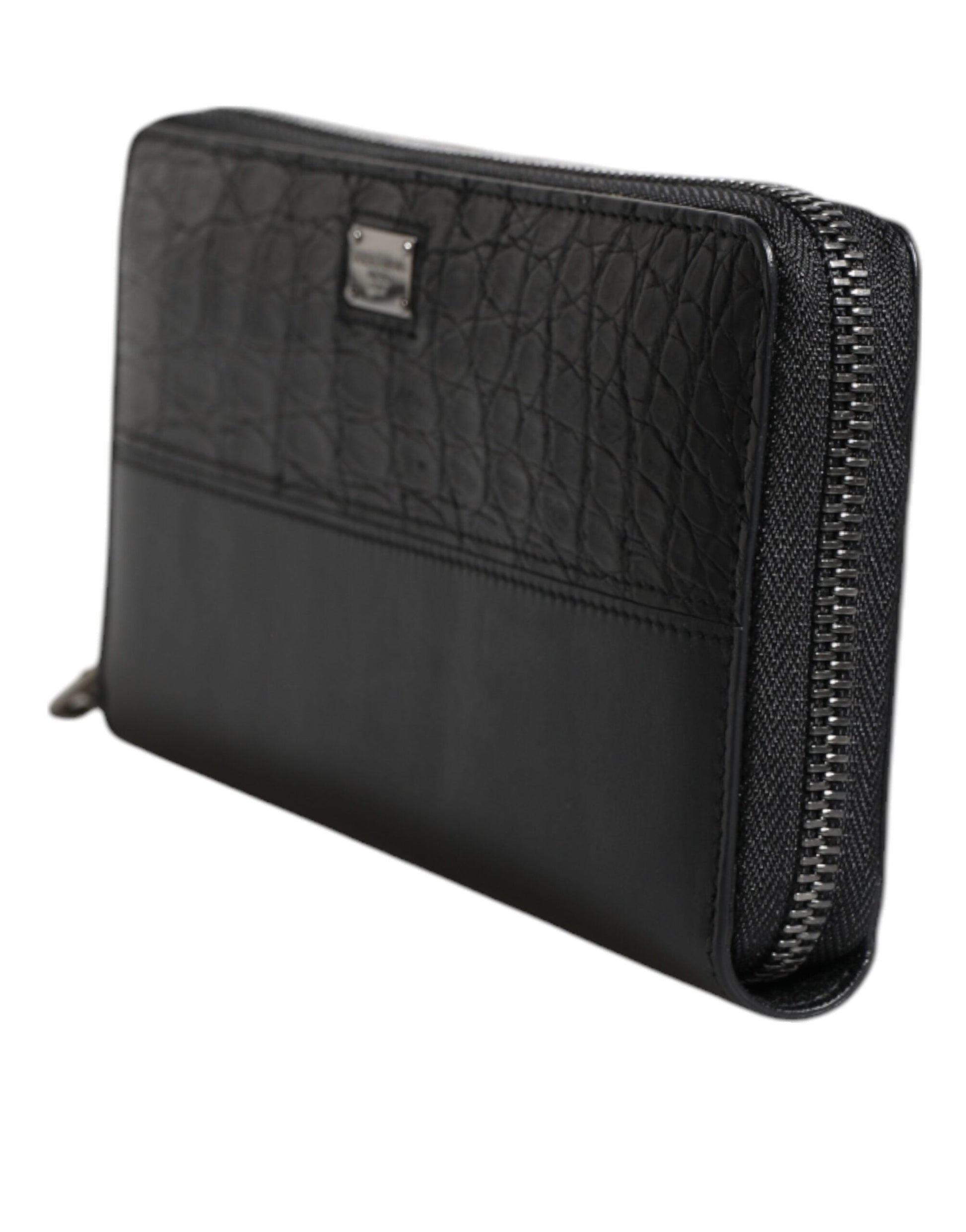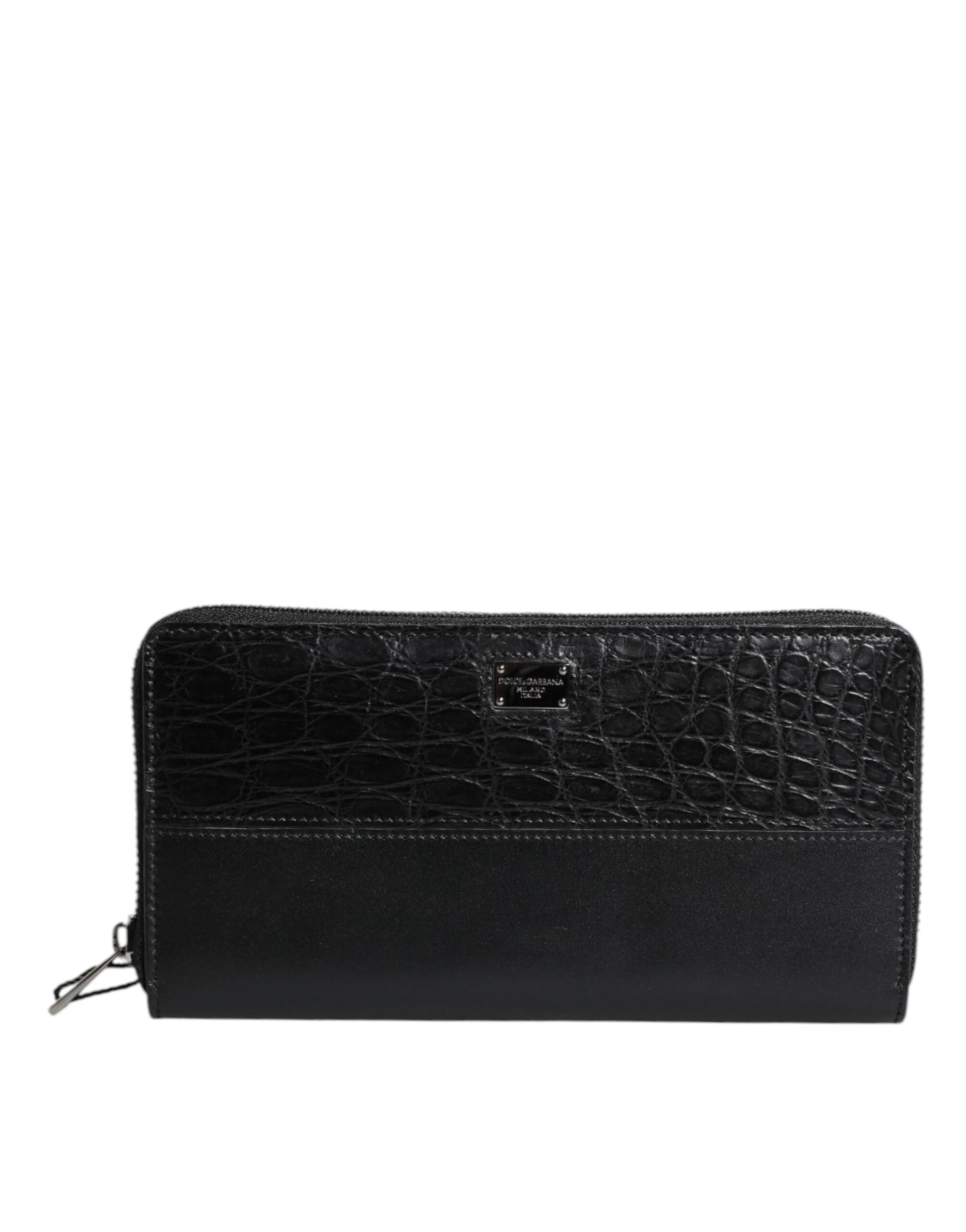Dolce & Gabbana Black Leather Logo Plaque Zip Around Continental Wallet