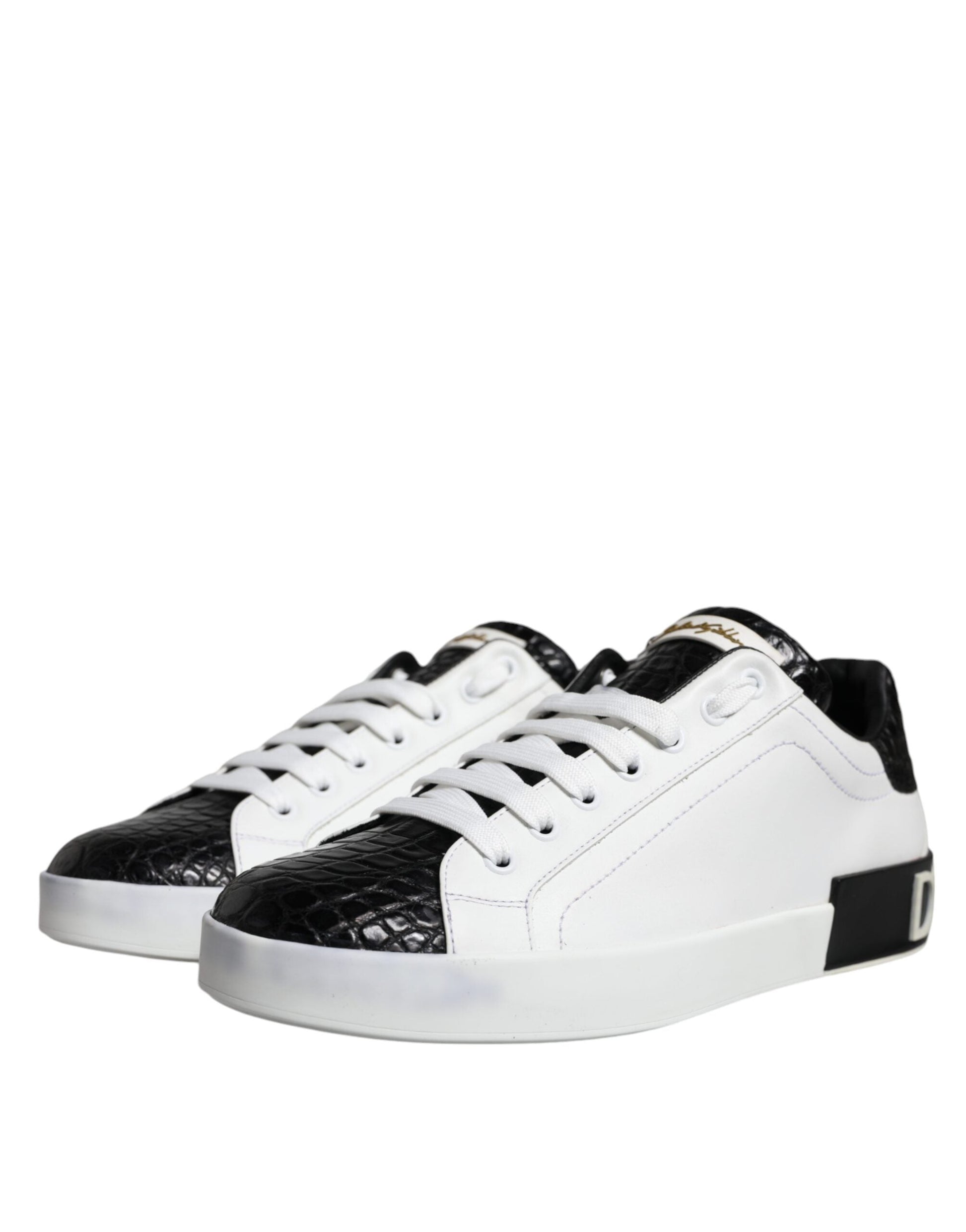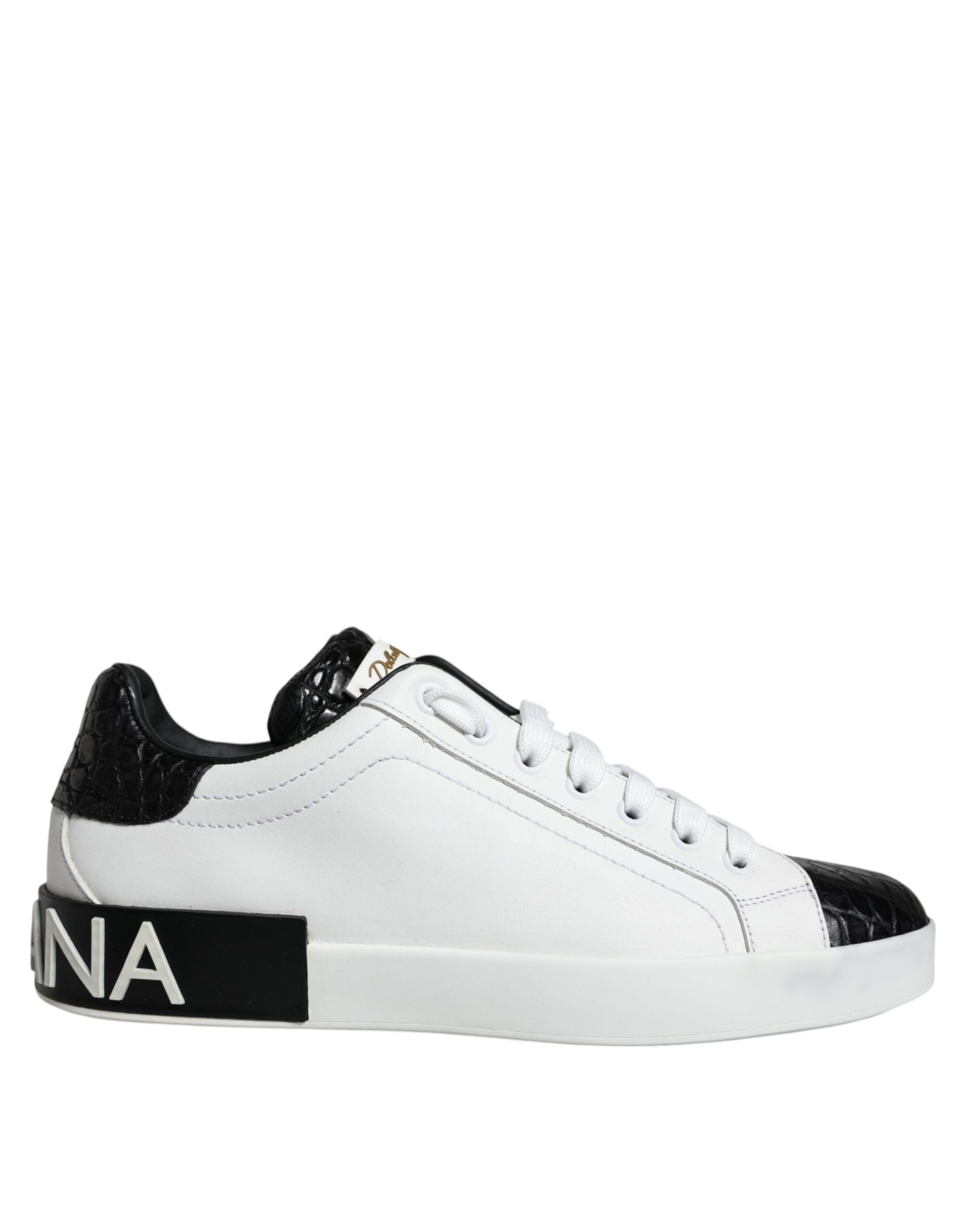 Dolce & Gabbana Black Leather Logo Portofino Sneaker Shoes