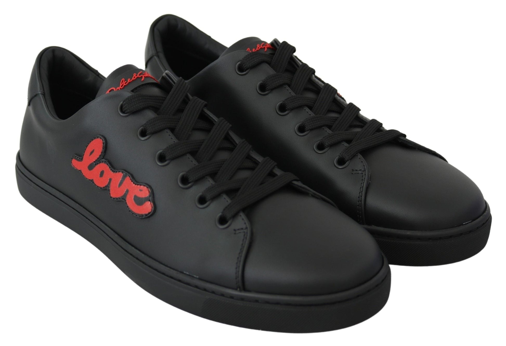 Dolce & Gabbana Black Leather Love Heart Sneakers Womens Shoes