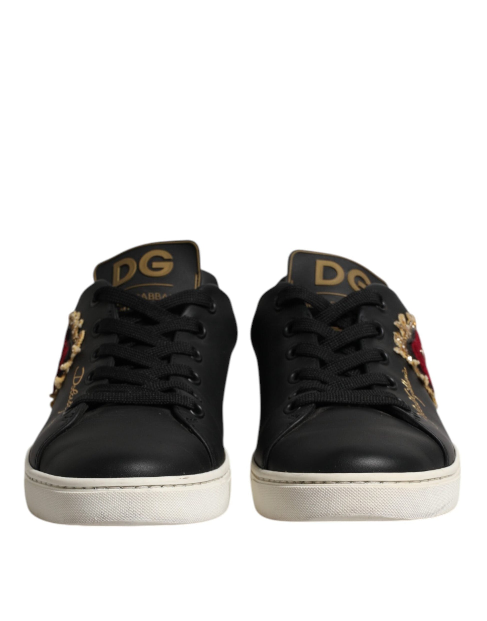 Dolce & Gabbana Black Leather Sacred Heart Sneakers Shoes