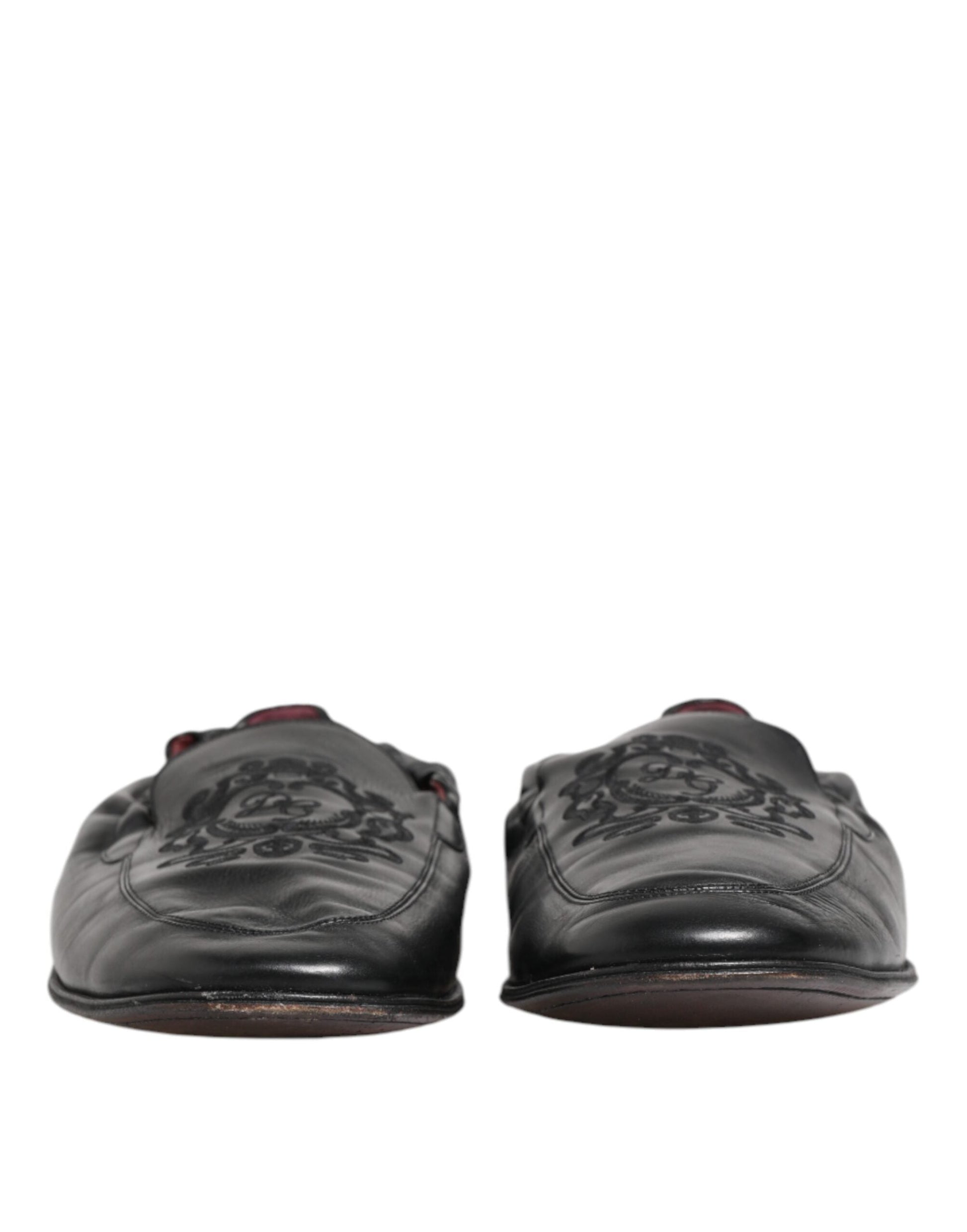 Dolce & Gabbana Black Leather Slip On Men Flat Loafers Shoes