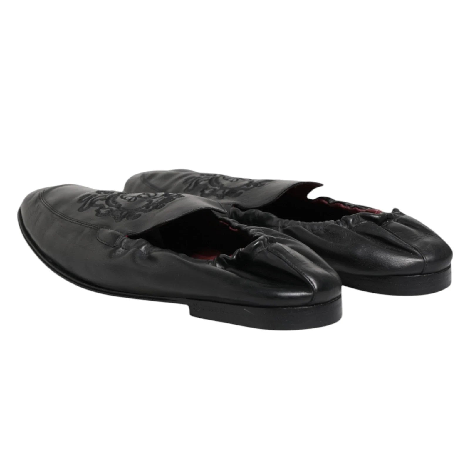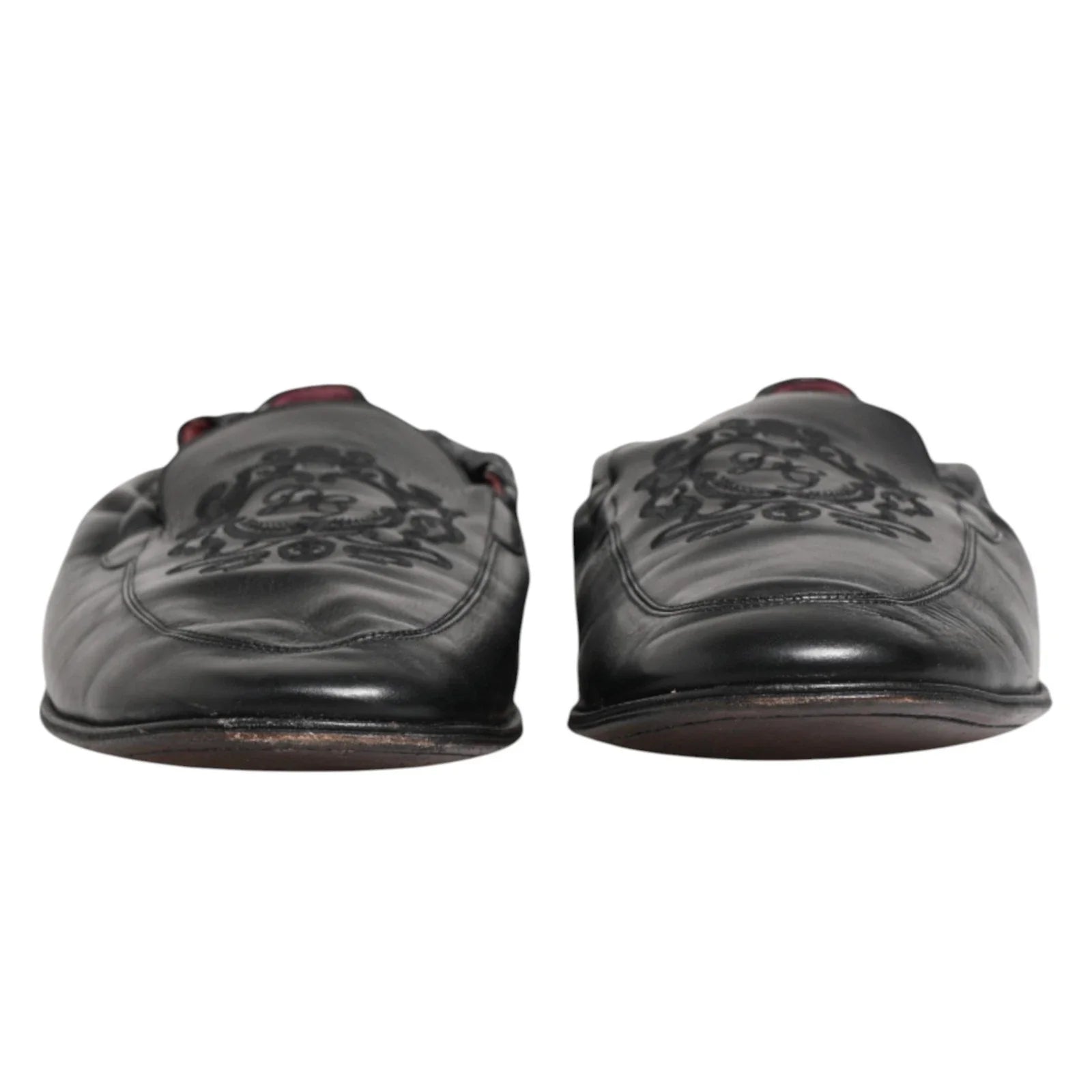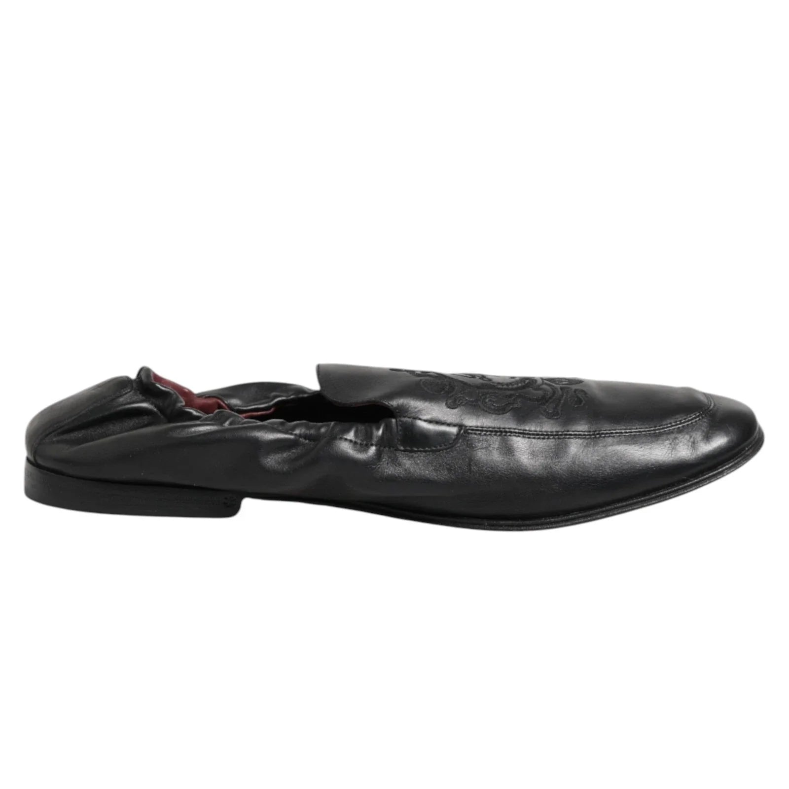 Dolce & Gabbana Black Leather Slip On Men Flat Loafers Shoes