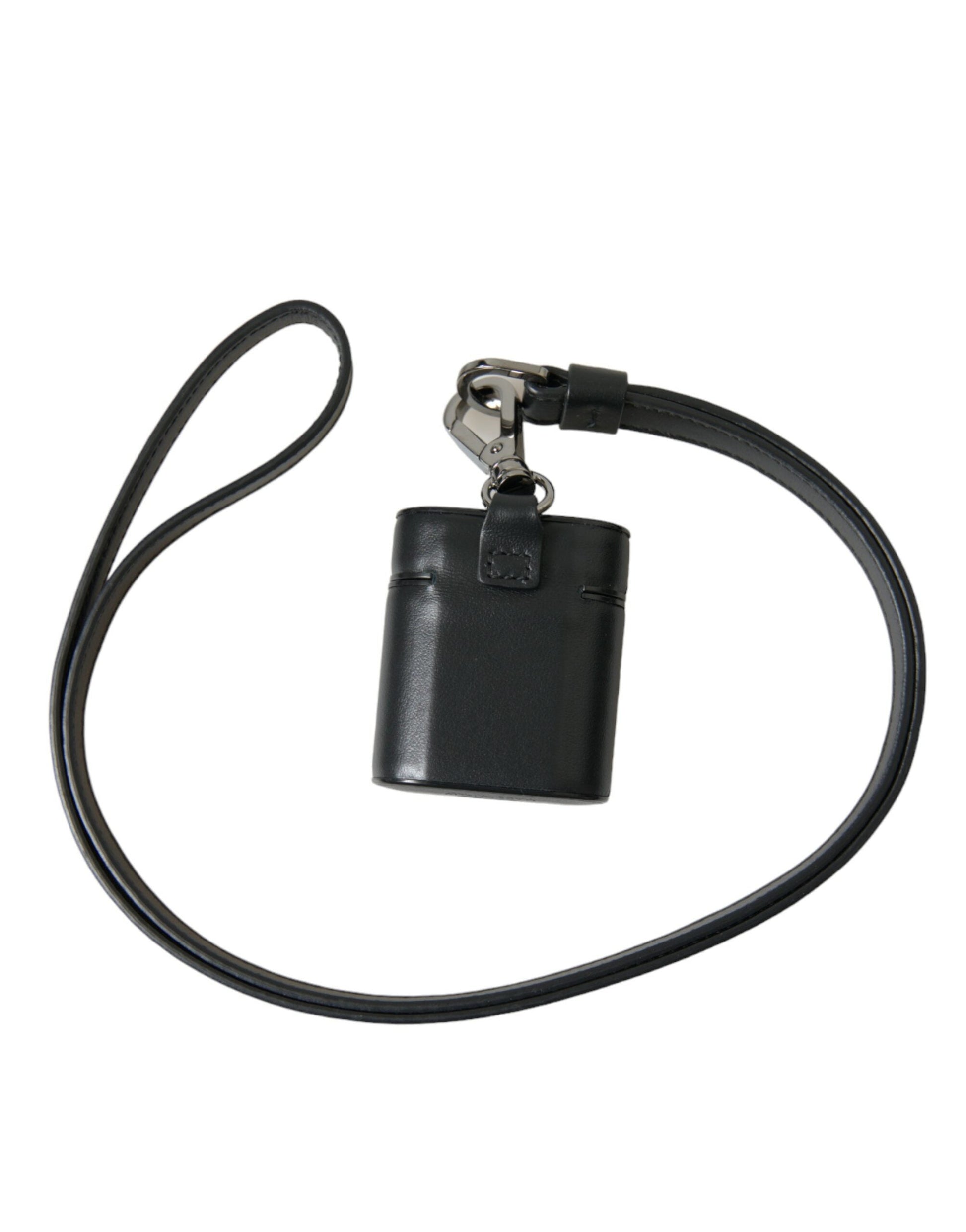 Dolce & Gabbana Black Leather Strap Silver Metal Logo Printed Airpods Case