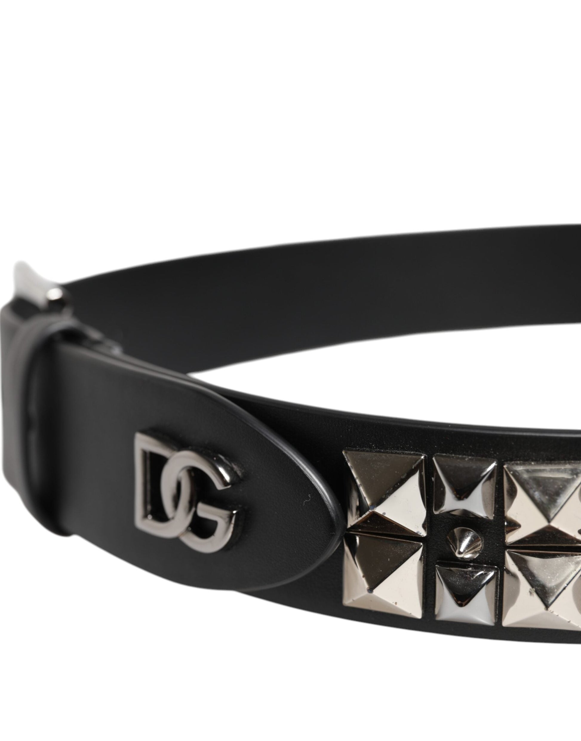 Dolce & Gabbana Black Leather Studded DG Metal Buckle Belt