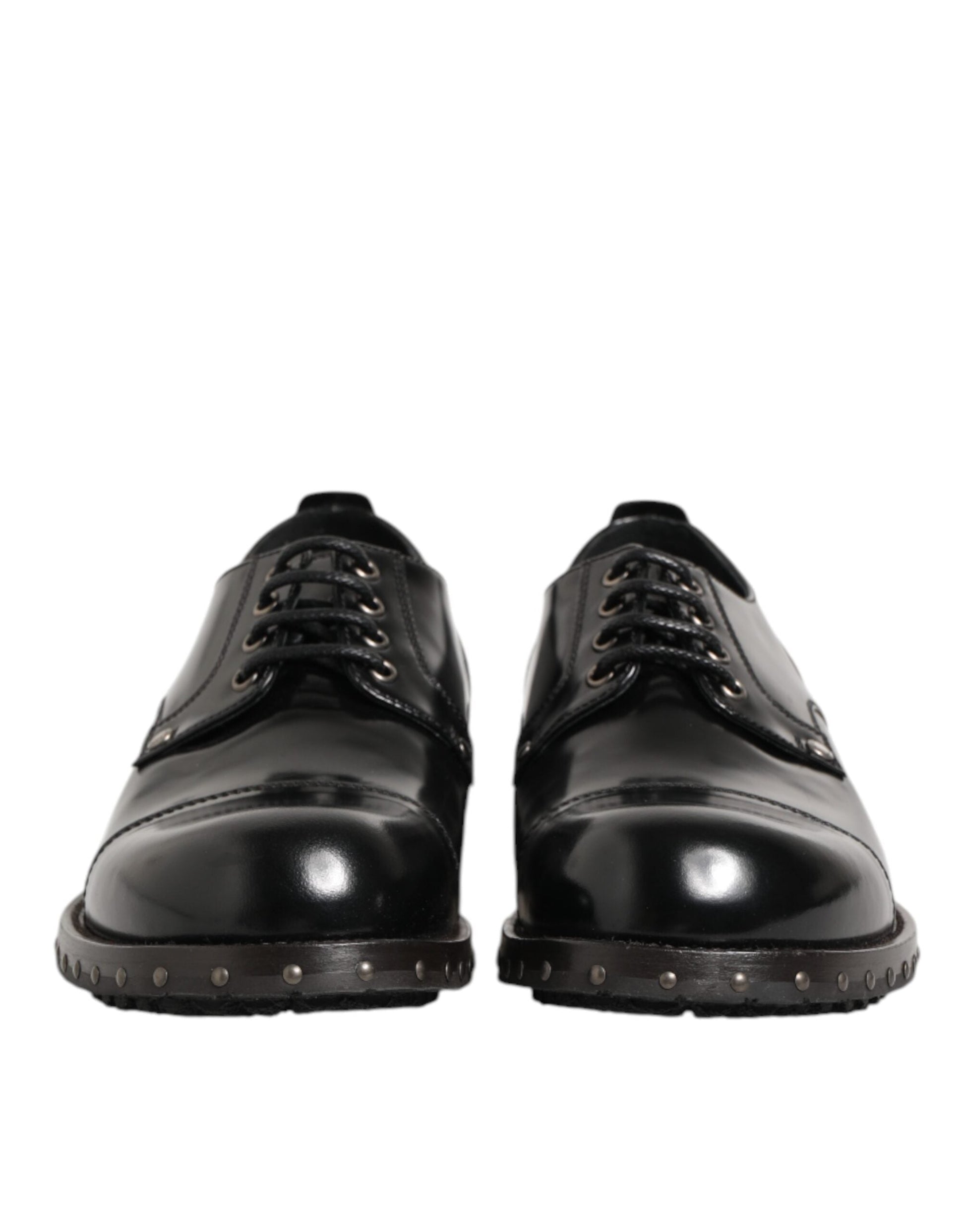 Dolce & Gabbana Black Leather Studded Men Formal Derby Shoes