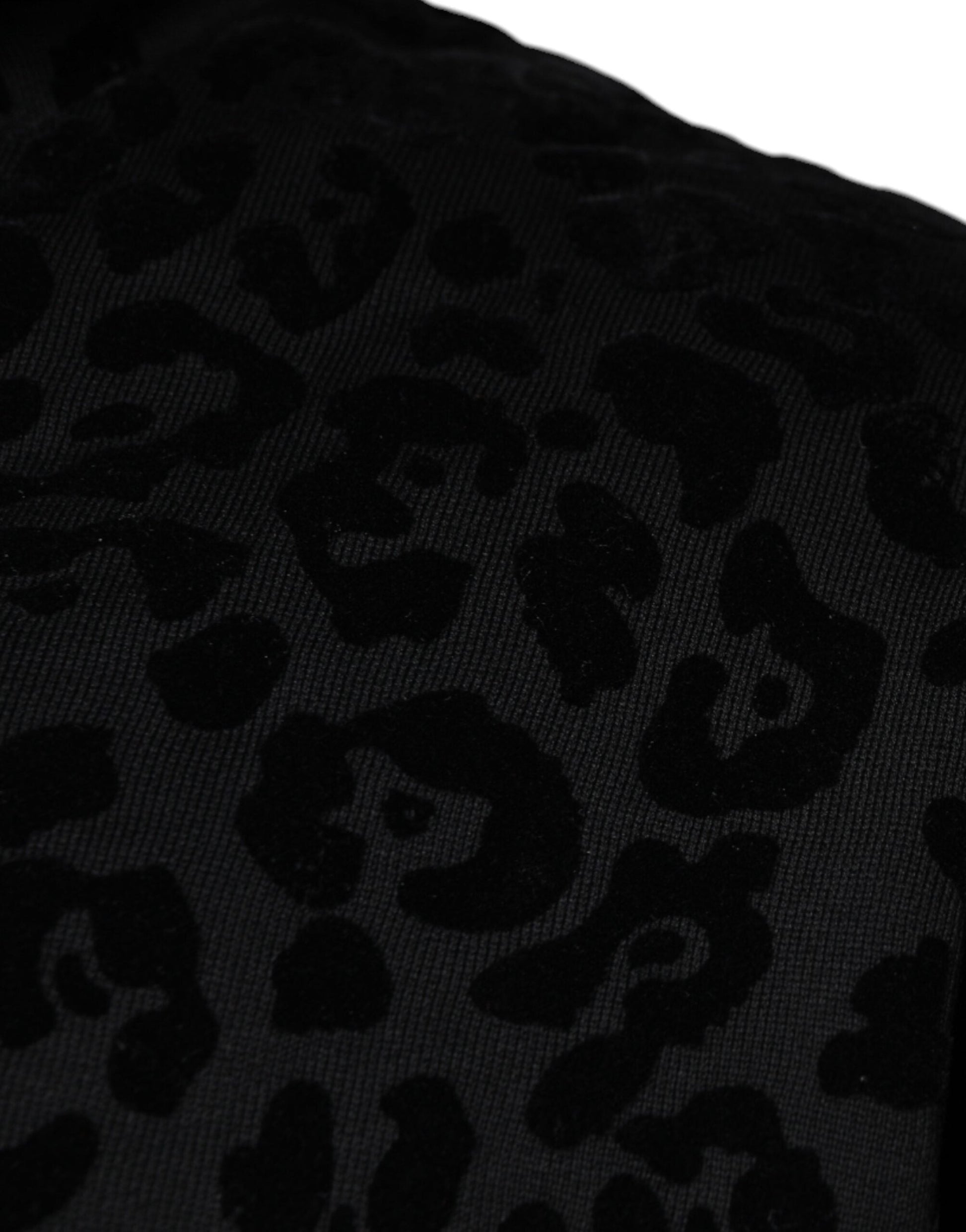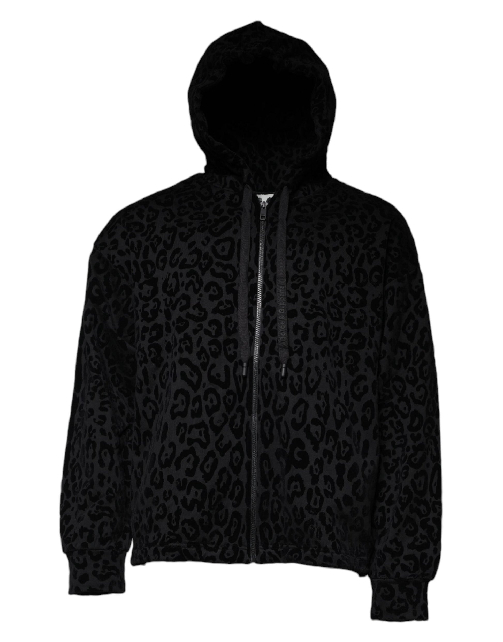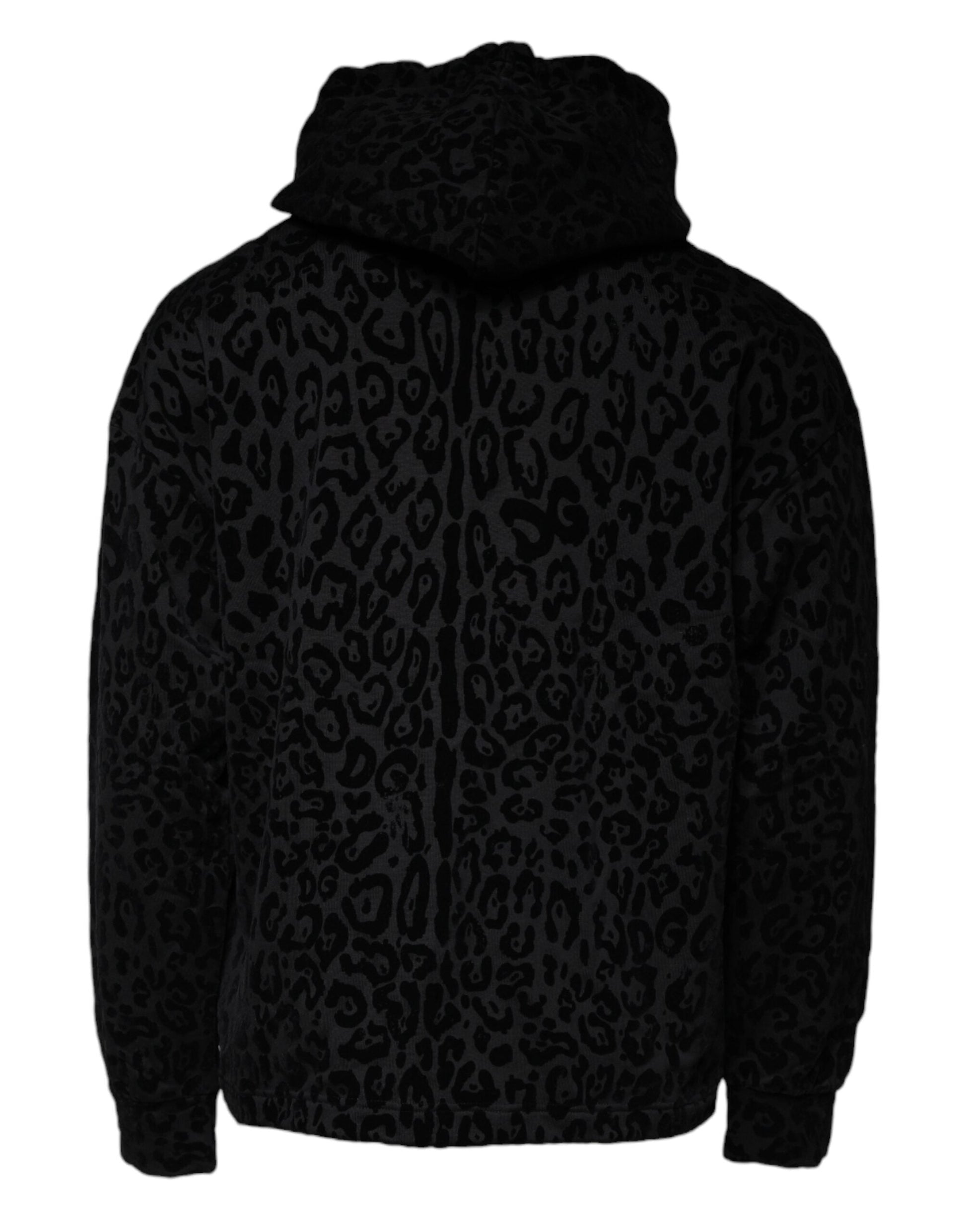 Dolce & Gabbana Black Leopard Cotton Hooded Full Zip Sweater
