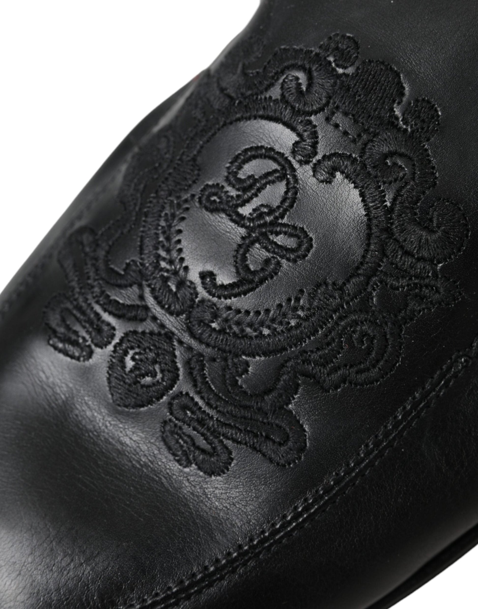 Dolce & Gabbana Black Logo Embroidered Leather Loafer Men Dress Shoes