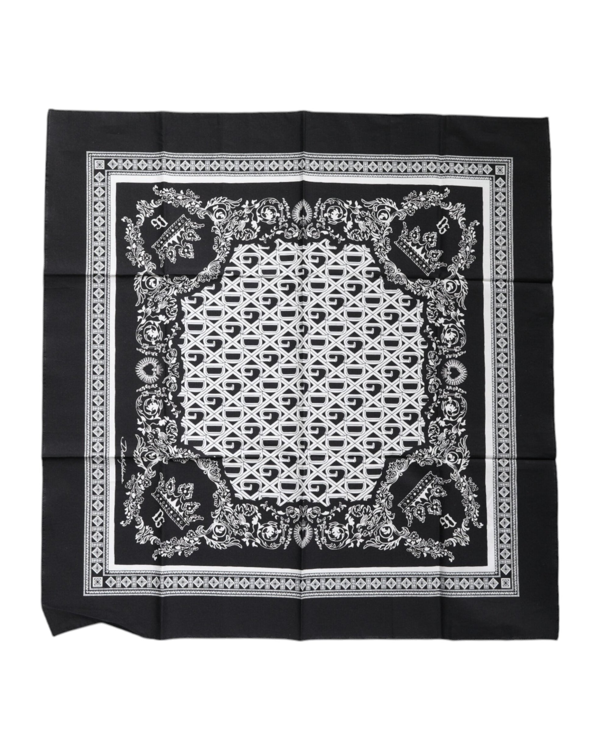 Dolce & Gabbana Black Logo Monogram Cotton Handkerchief Scarf
