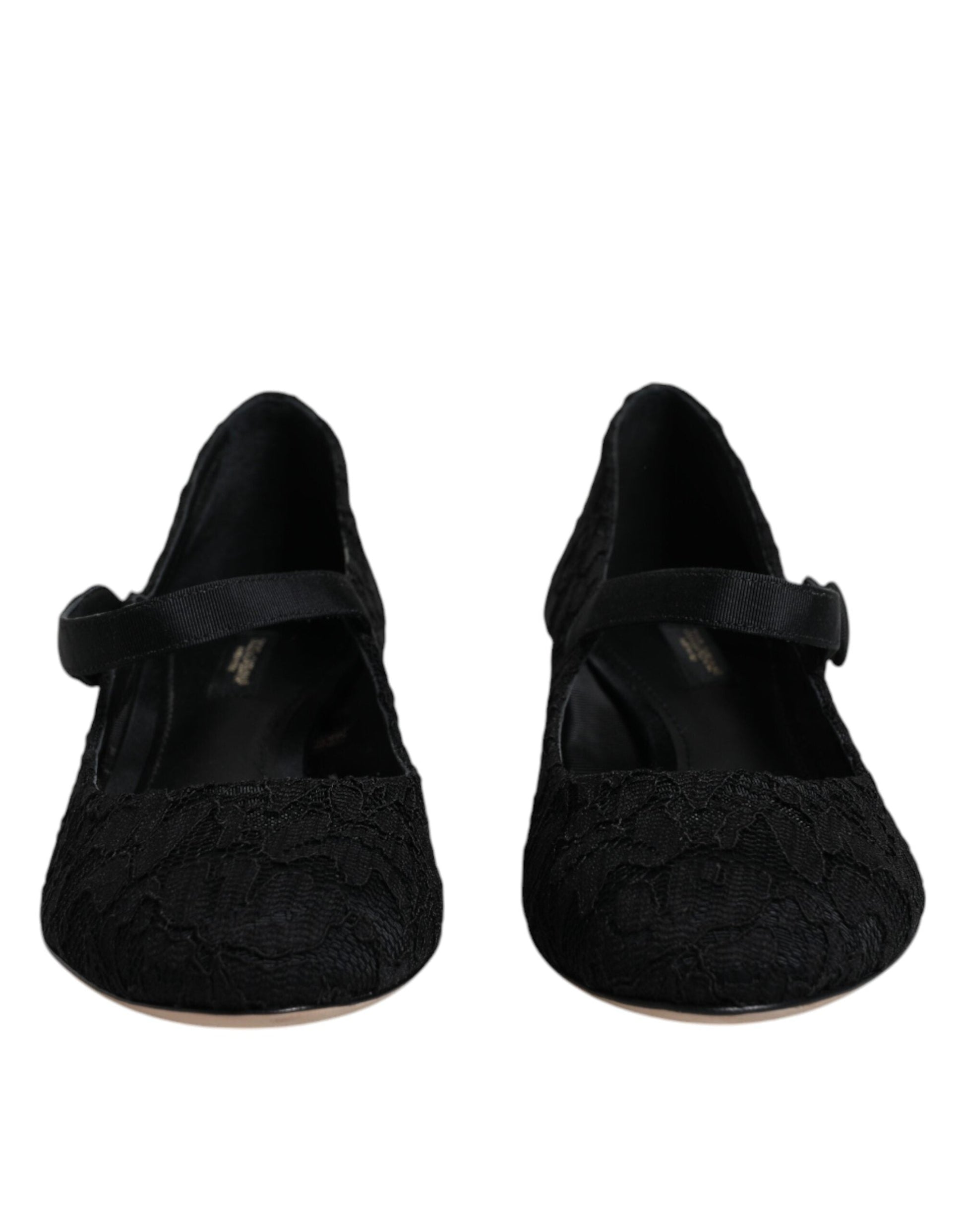 Dolce & Gabbana Black Mary Jane Taormina Lace Pumps Shoes