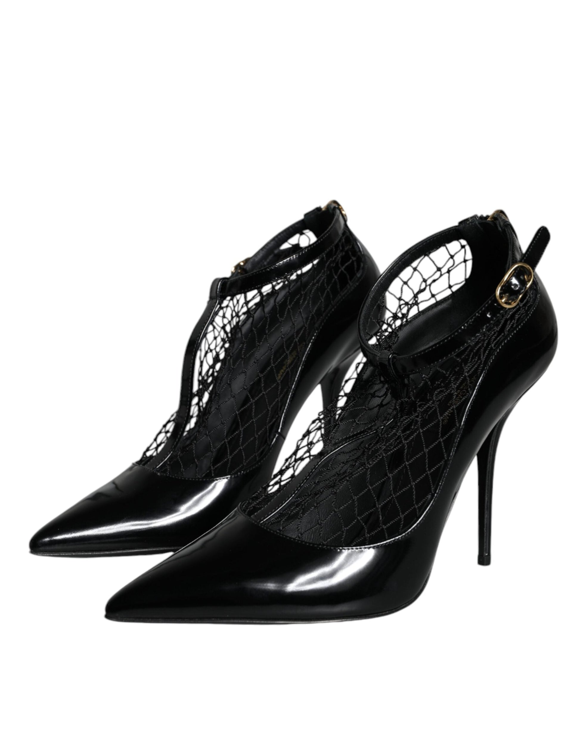 Dolce & Gabbana Black Mesh Patent Leather Heels Pumps Shoes