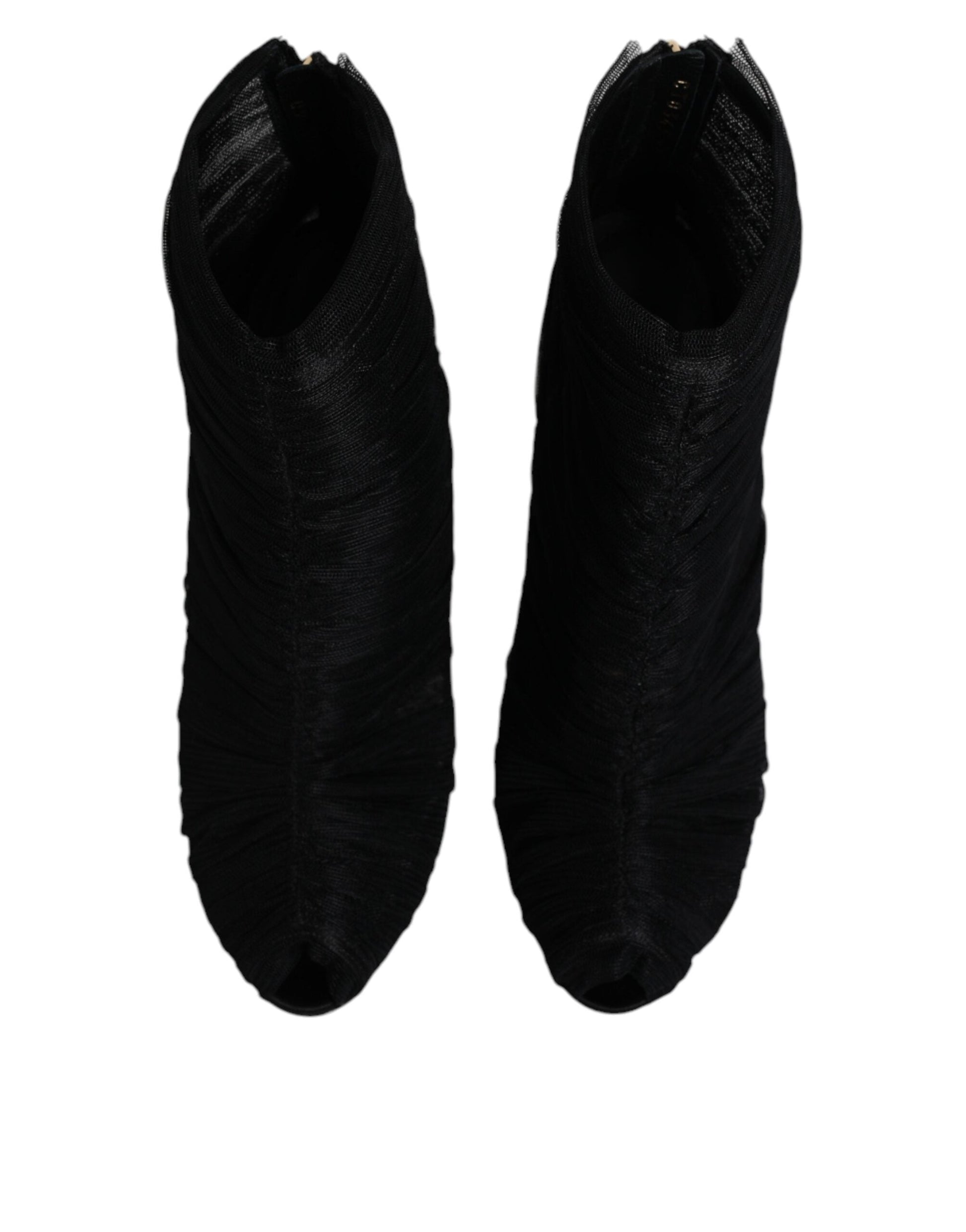 Dolce & Gabbana Black Mesh Stiletto Heels Ankle Boots Shoes