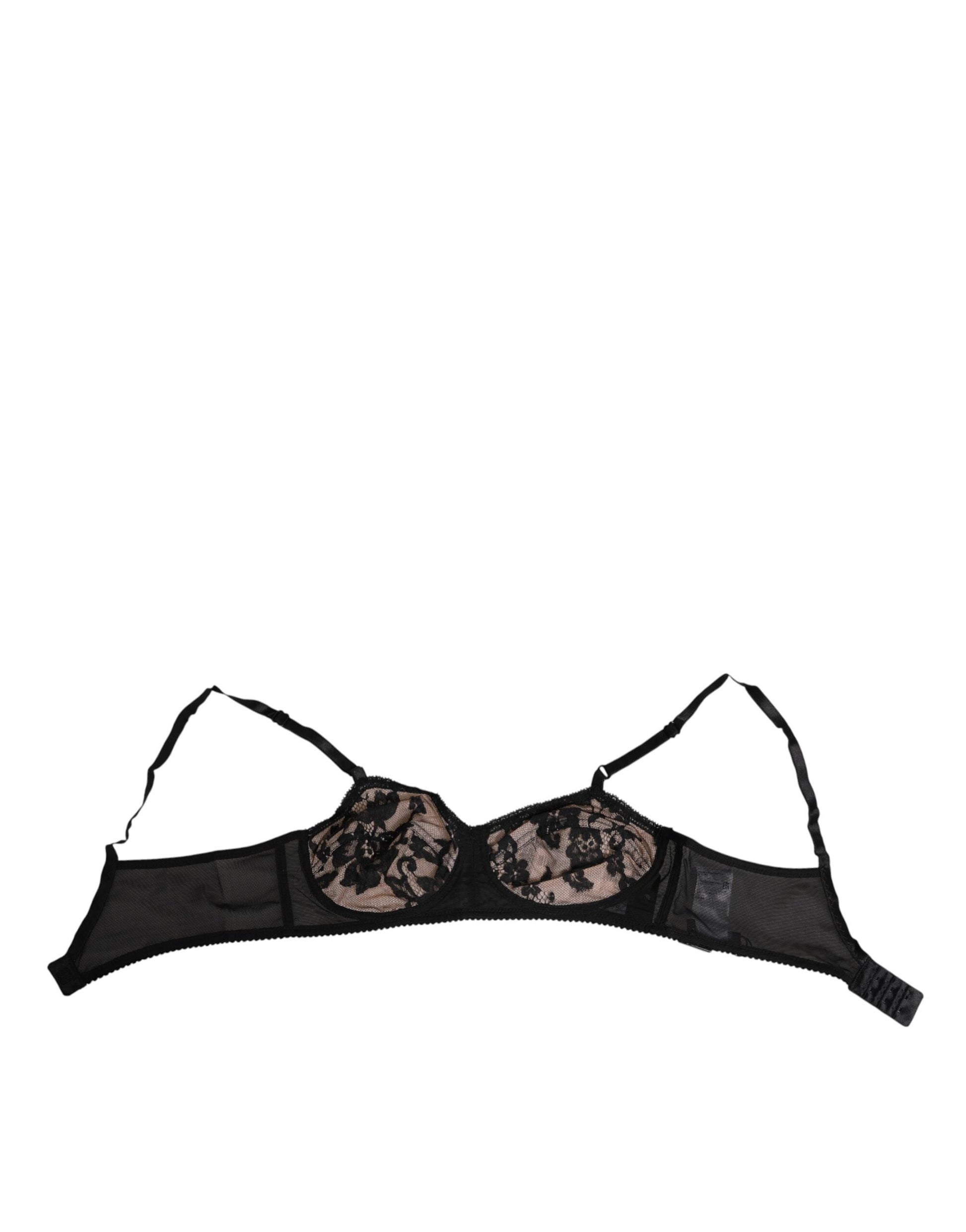 Dolce & Gabbana Black Nude Floral Lace Sheer Bra Underwear