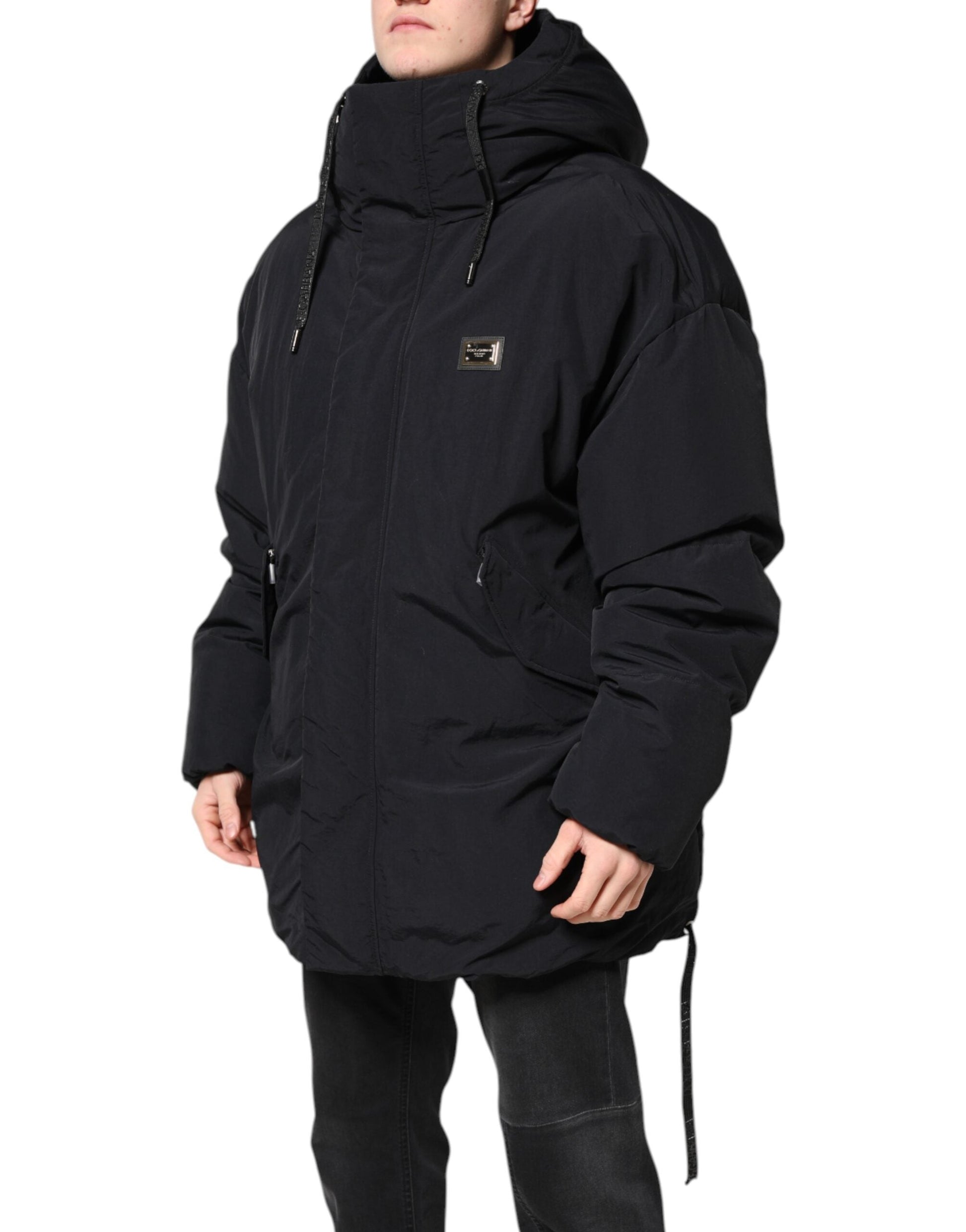 Dolce & Gabbana Black Nylon Full Zip Hooded Parka Jacket