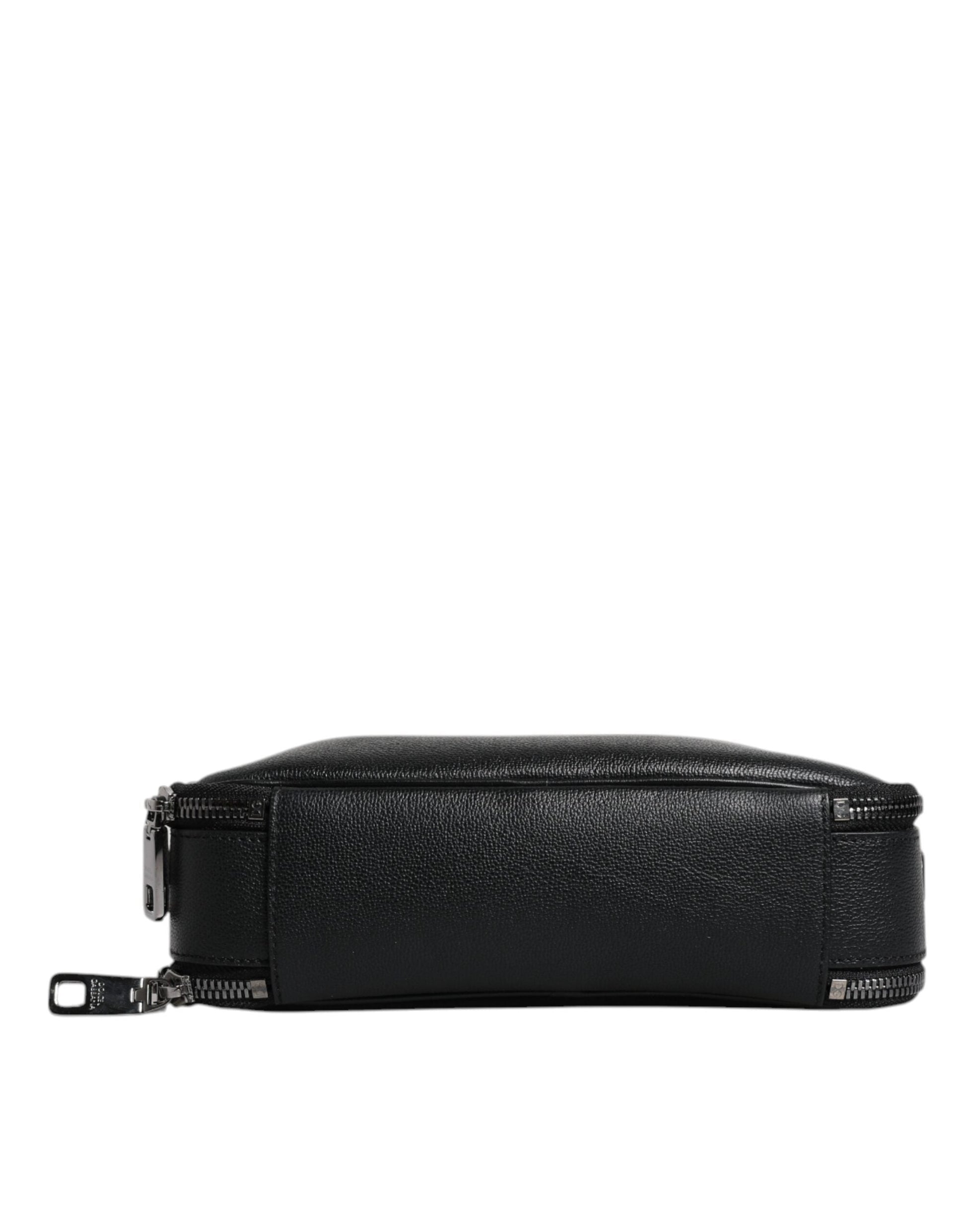 Dolce & Gabbana Black Nylon Leather Logo Top Handle Crossbody Bag