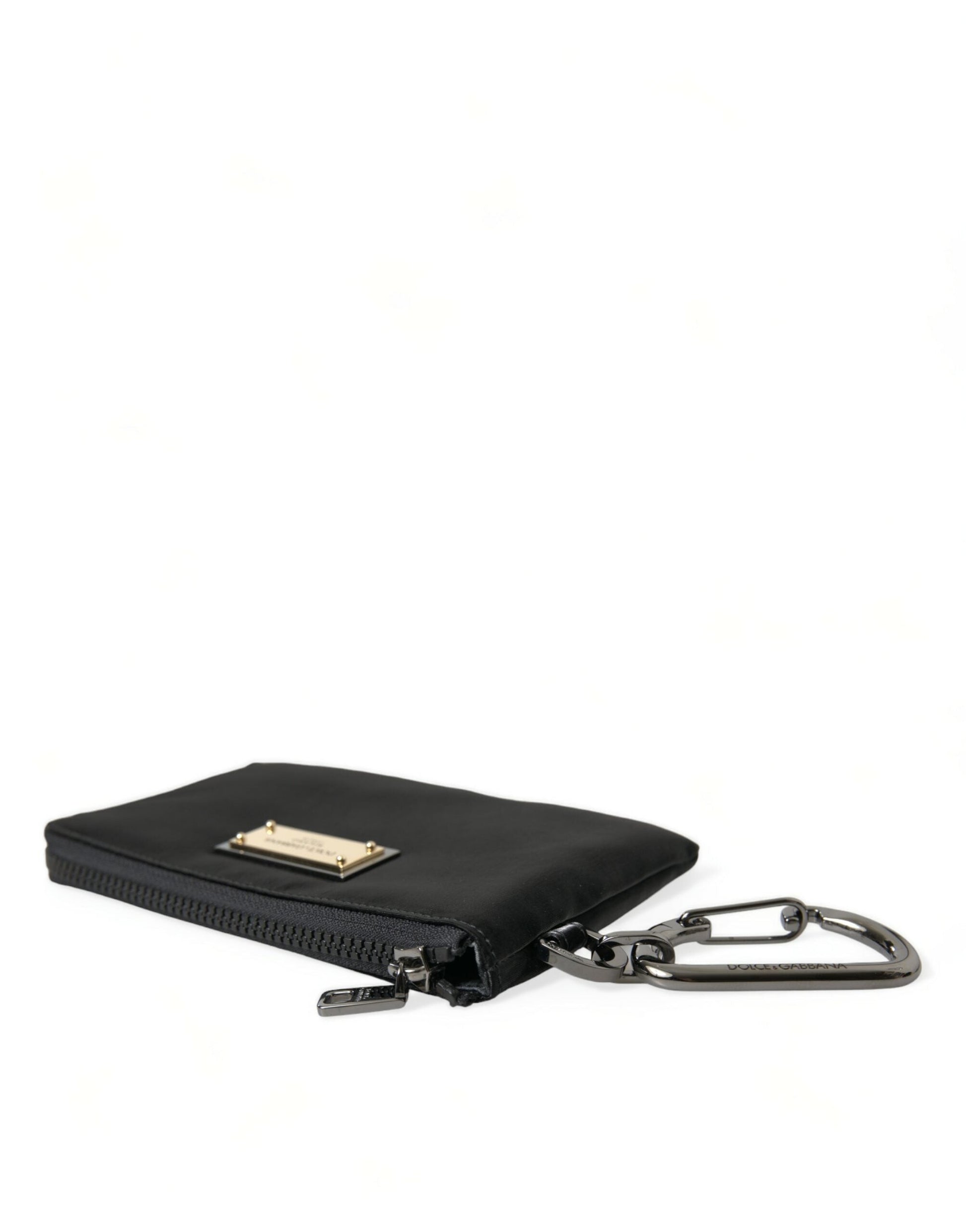 Dolce & Gabbana Black Nylon Logo Plaque Keyring Pouch Clutch Bag