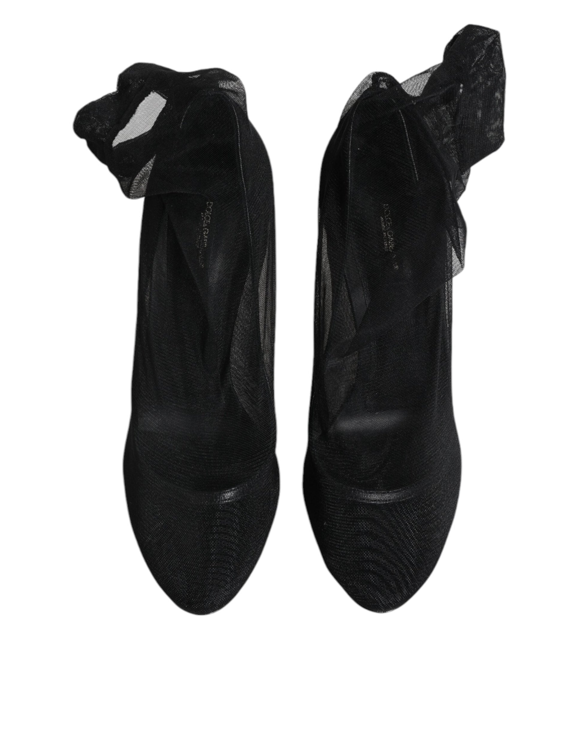 Dolce & Gabbana Black Nylon Mesh Sock Style Boots Shoes