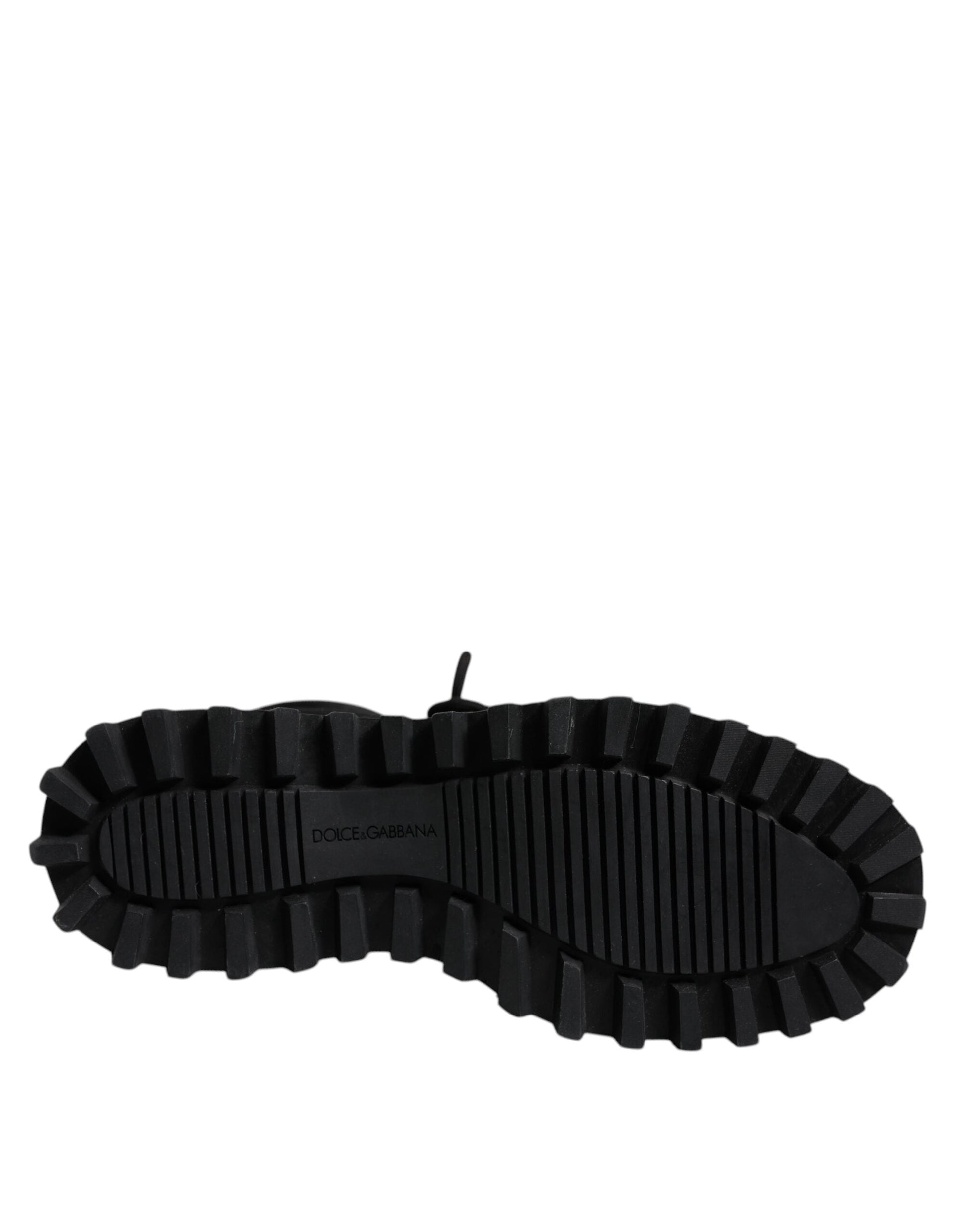 Dolce & Gabbana Black Padded Mid Calf Lace Up Boots Shoes