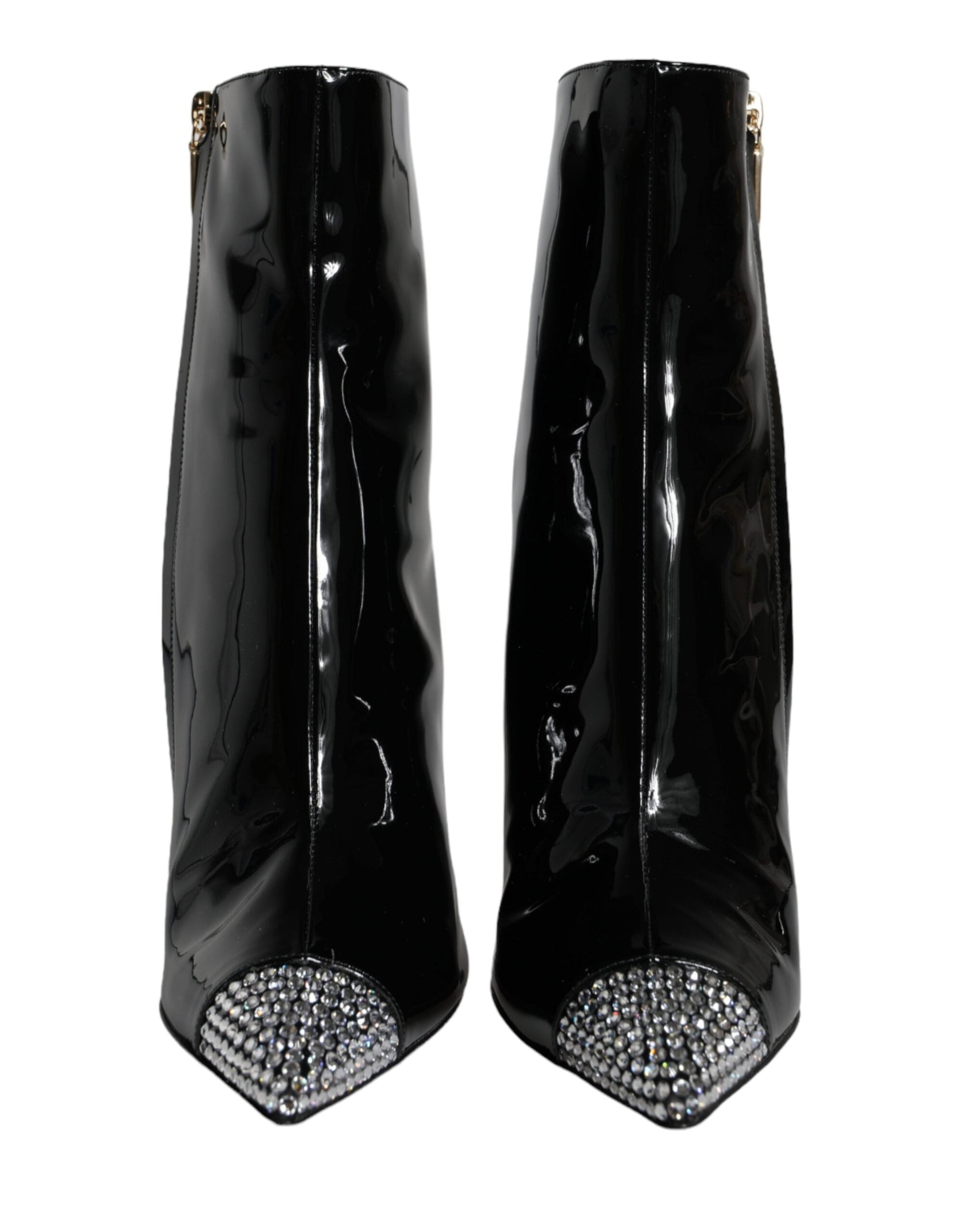 Dolce & Gabbana Black Patent Leather Crystal Heel Boots Shoes