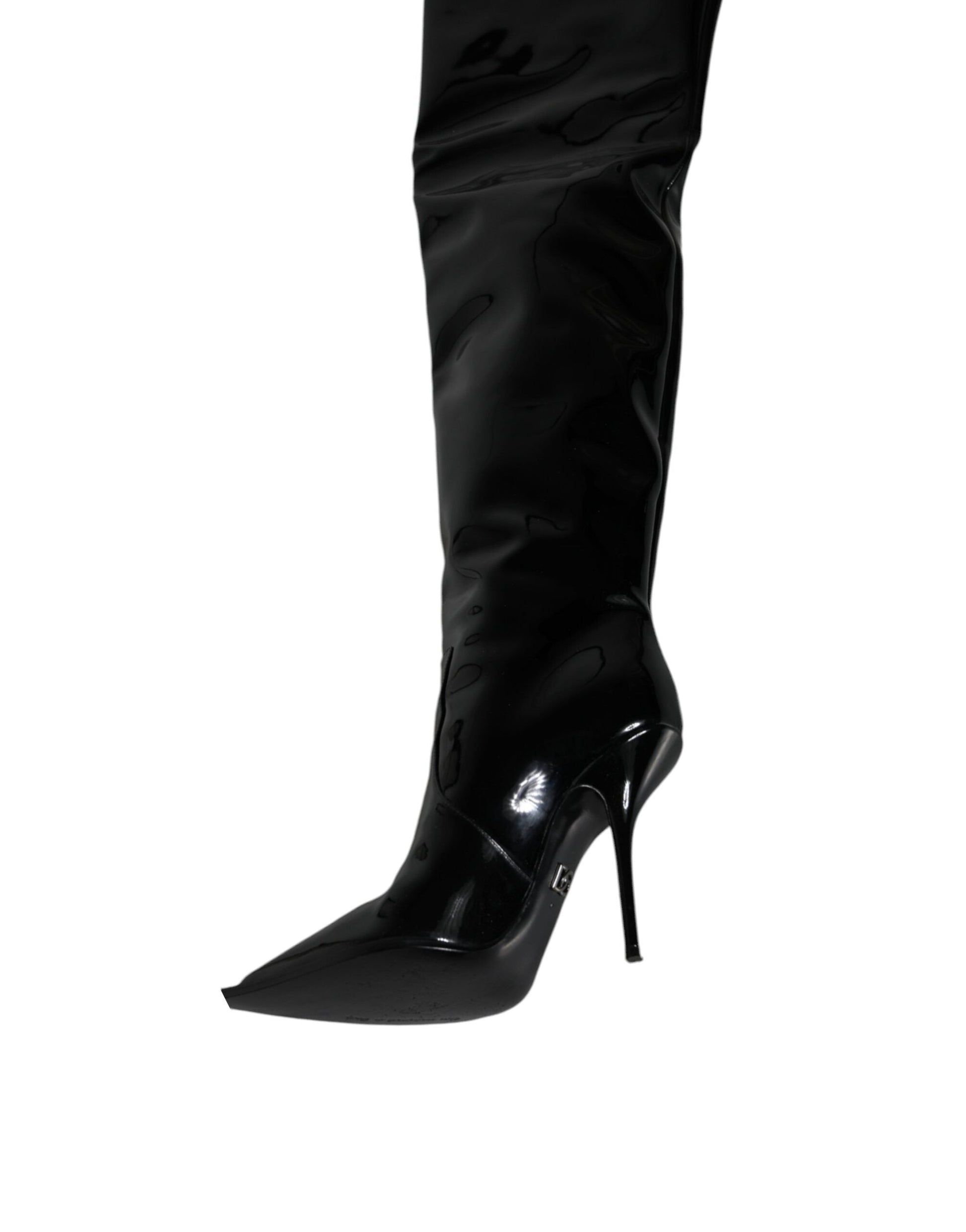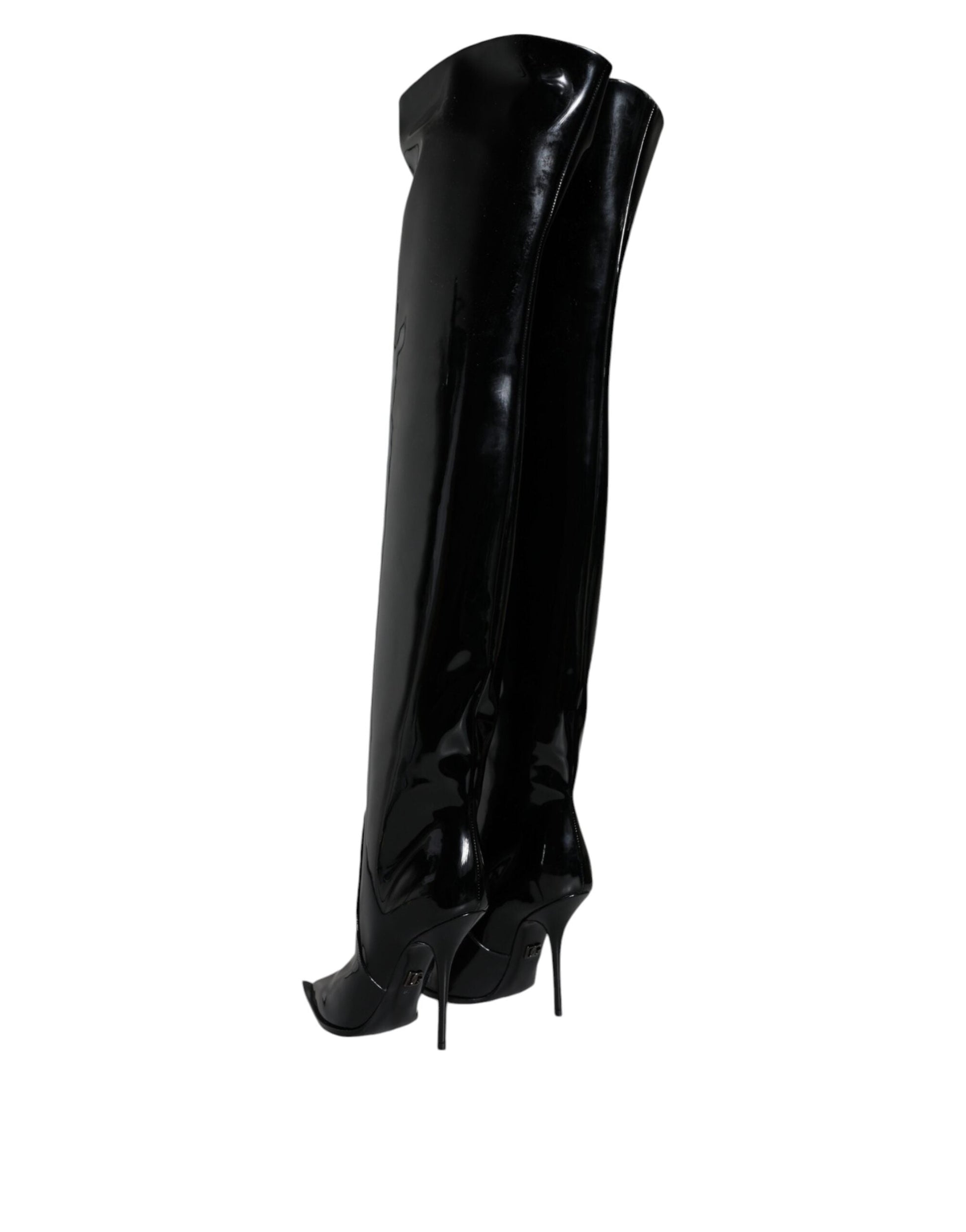Dolce & Gabbana Black Patent Leather Knee High Boots Shoes
