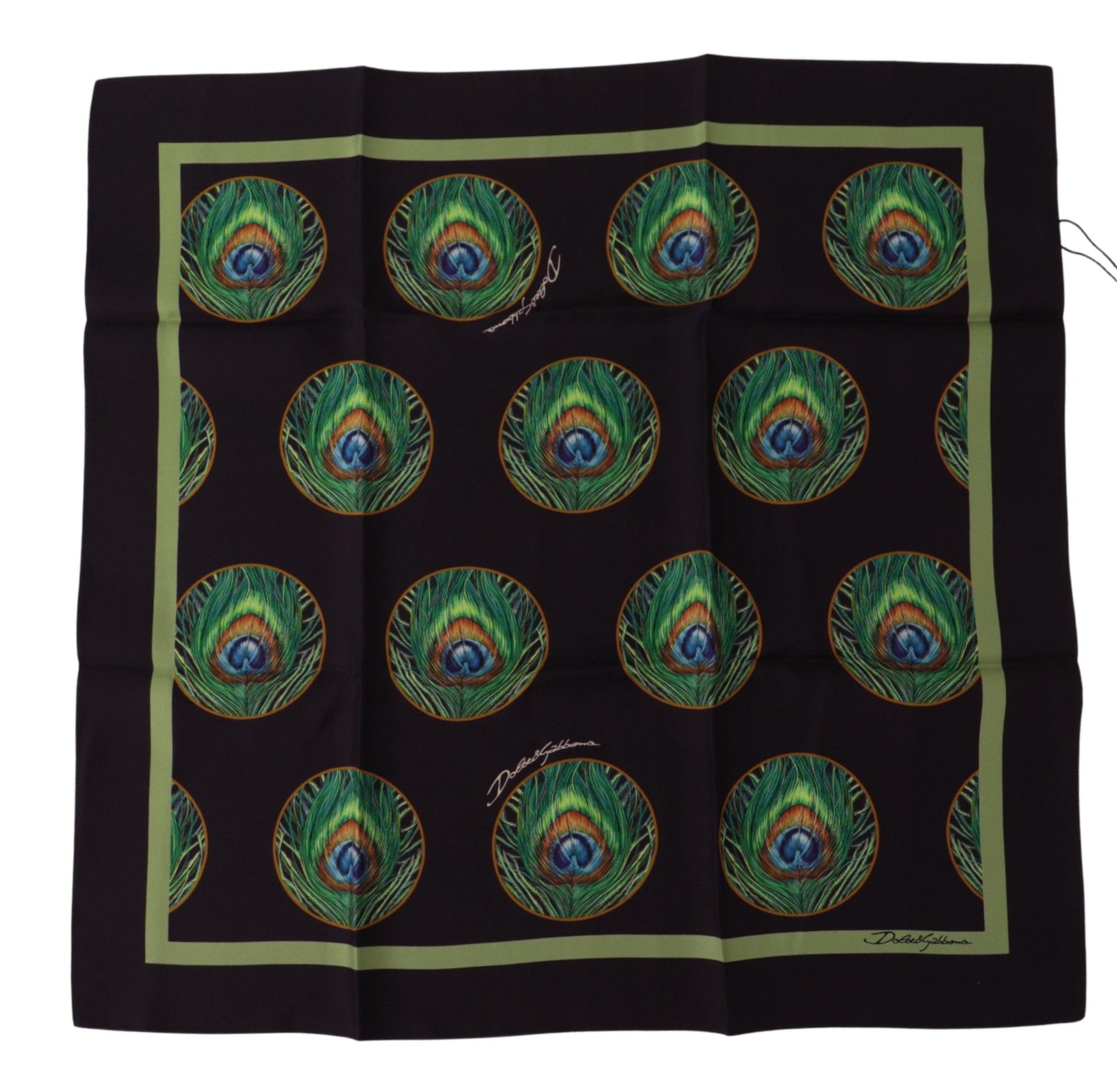 Dolce & Gabbana Black Peacock Feather DG Printed Square Handkerchief Scarf