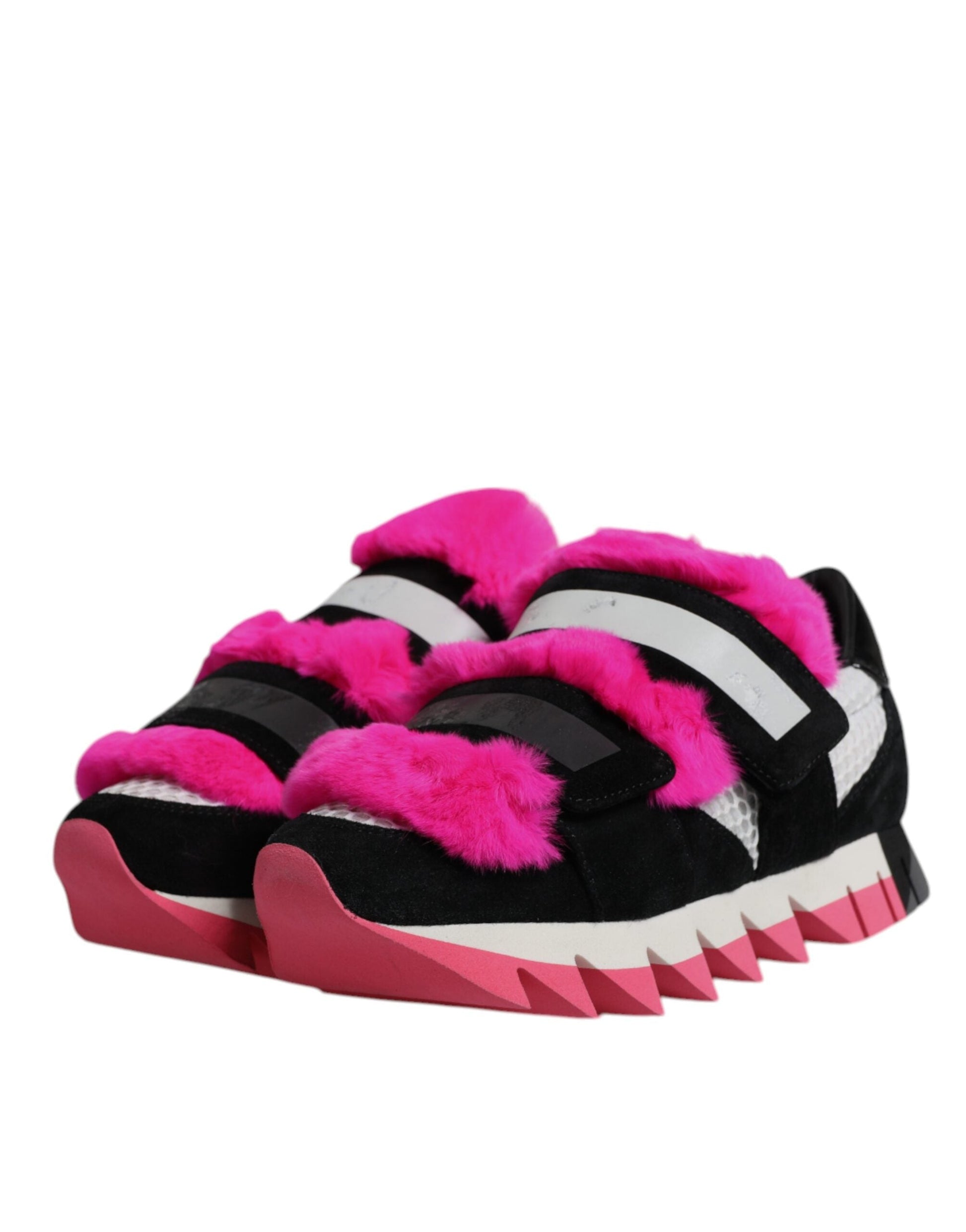 Dolce & Gabbana Black Pink Fur Embellished Sneakers Shoes