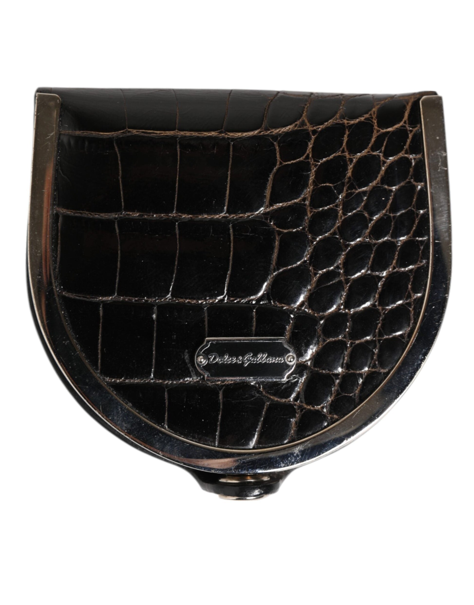 Dolce & Gabbana Black Polished Crocodile Leather Mens Coin Purse Wallet