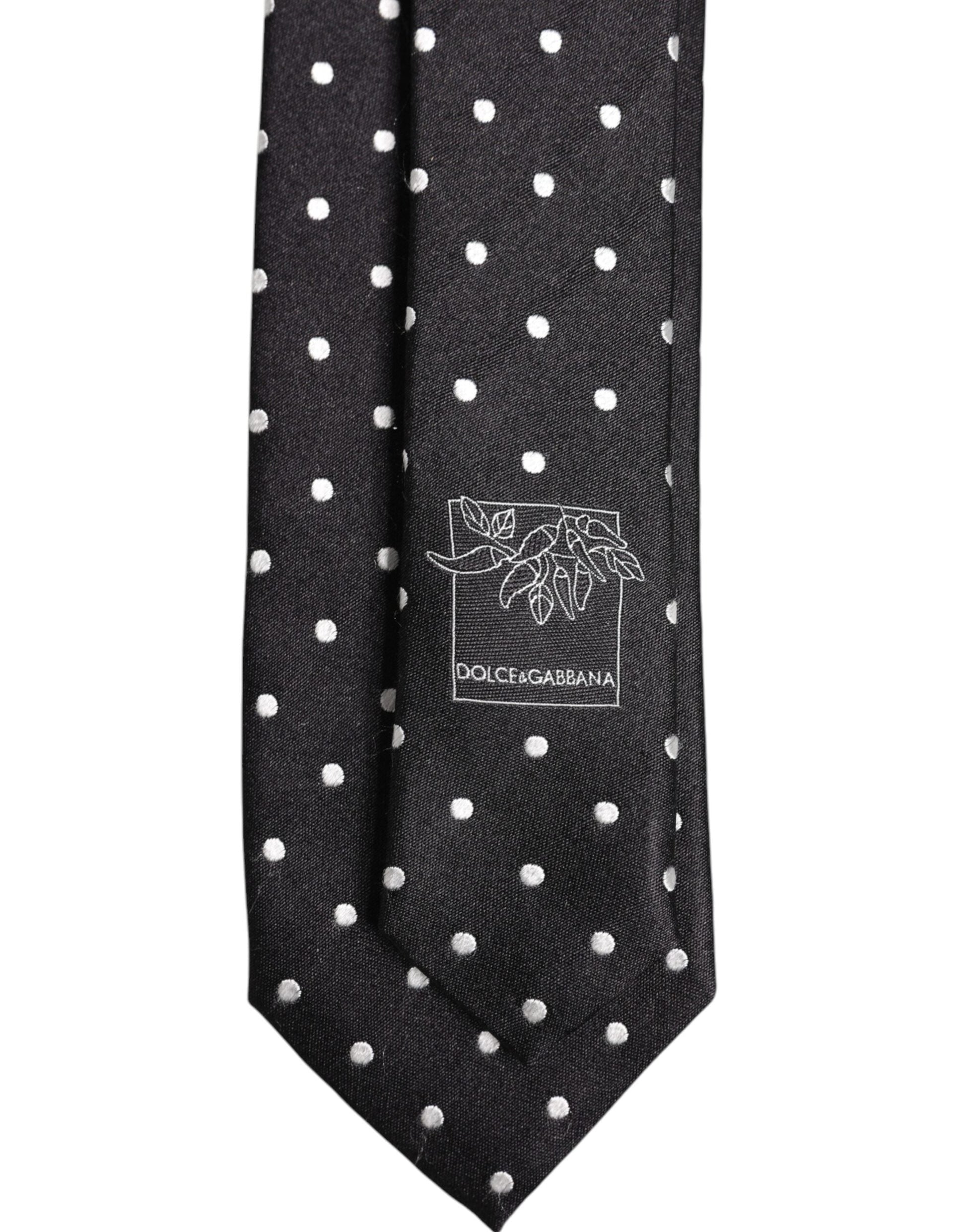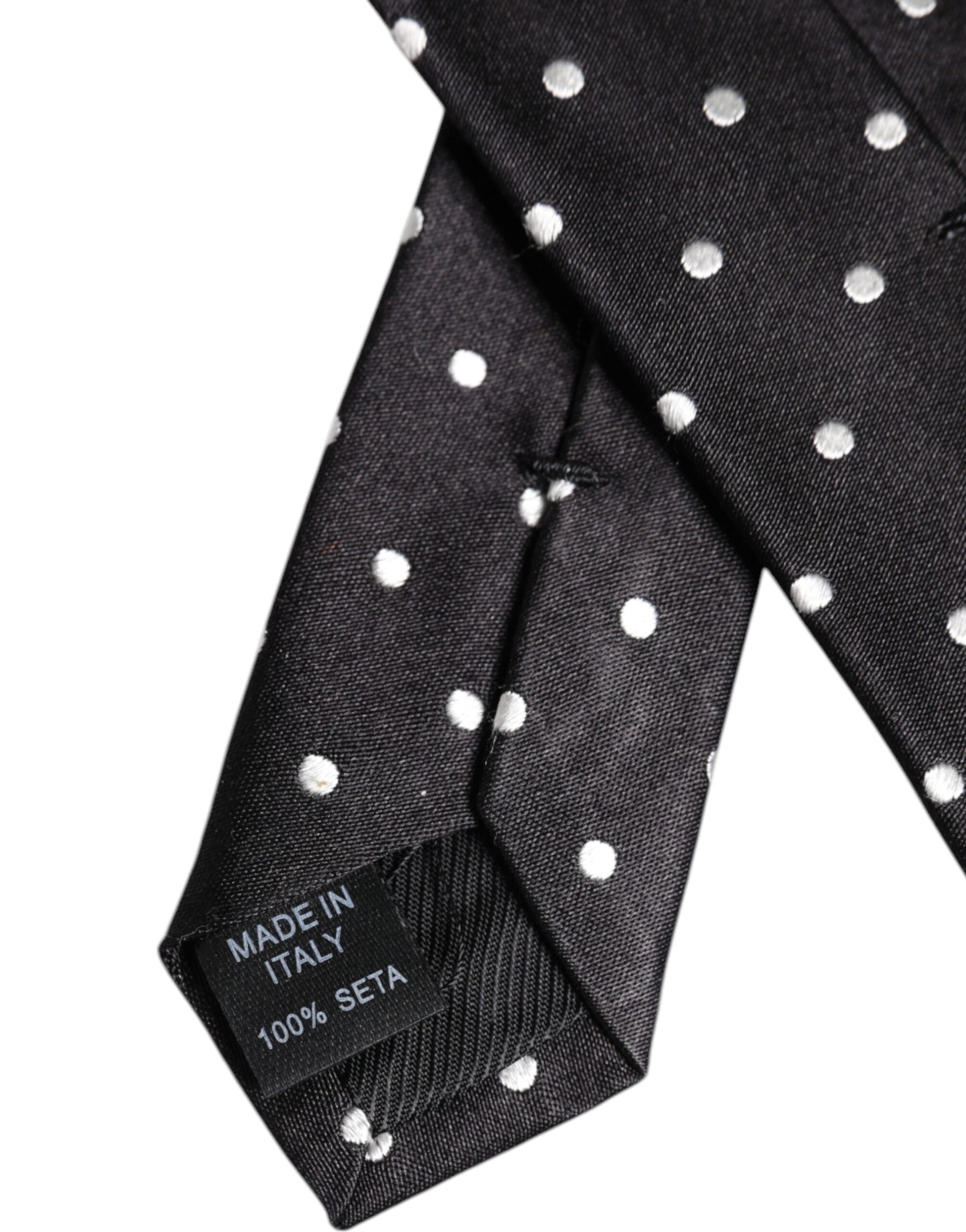 Dolce & Gabbana Black Polka Dots Silk Adjustable Necktie Tie