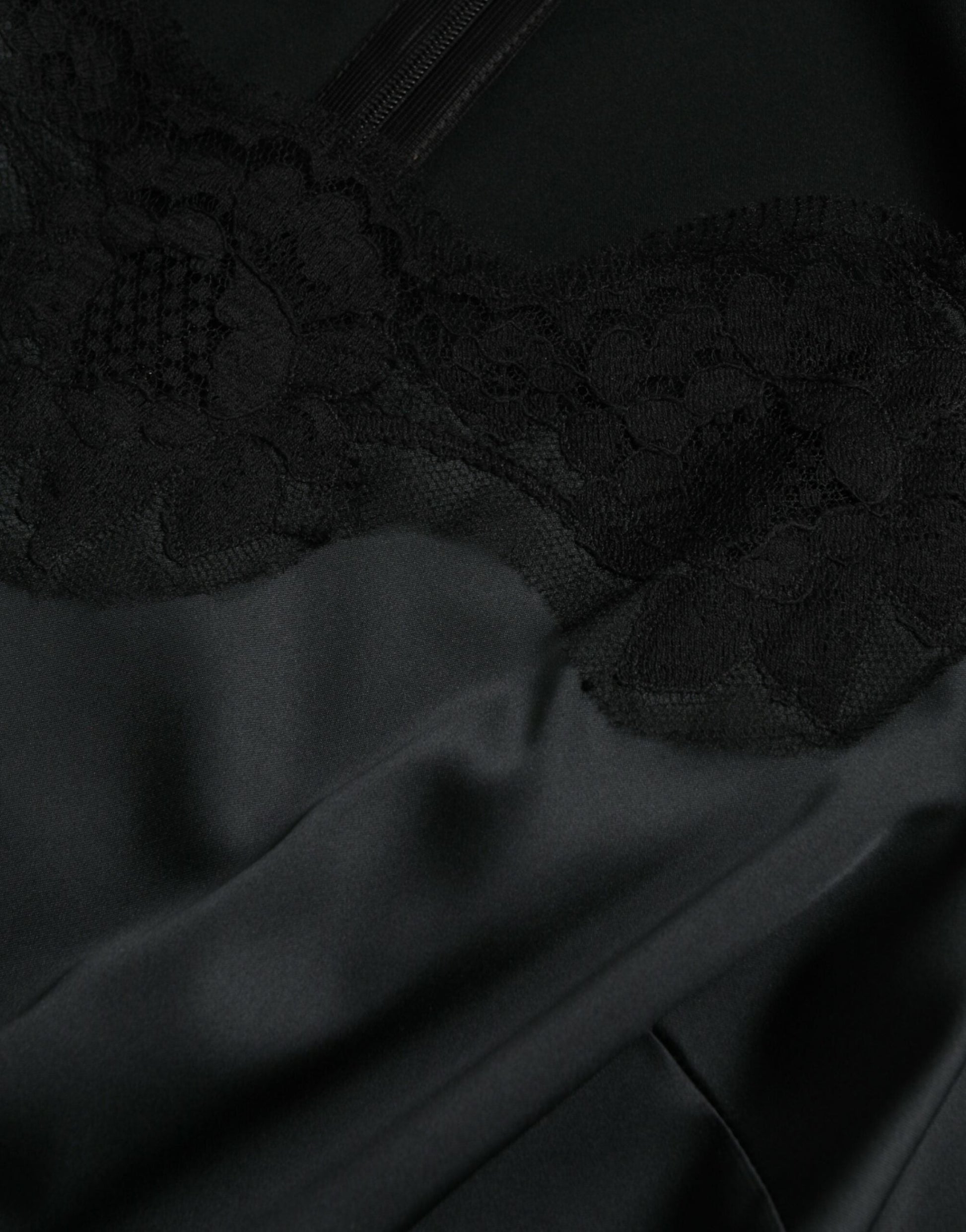 Dolce & Gabbana Black Polyester Lace Trim Sheath Midi Dress