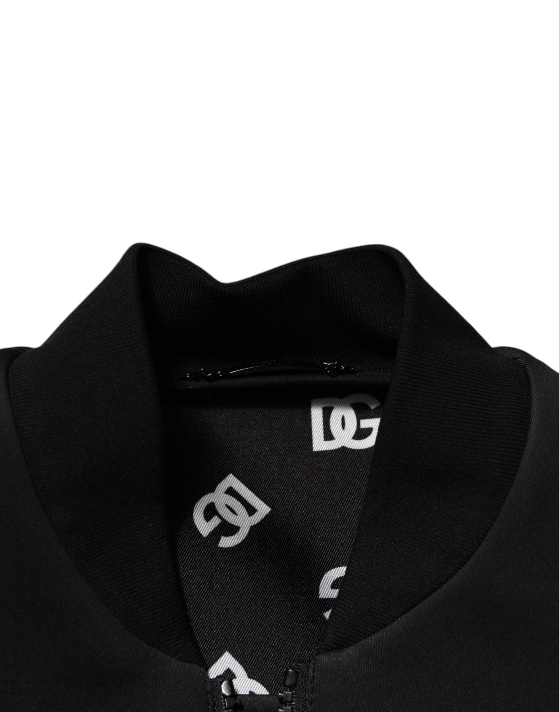 Dolce & Gabbana Black Polyester Logo Plaque Bomber Jacket