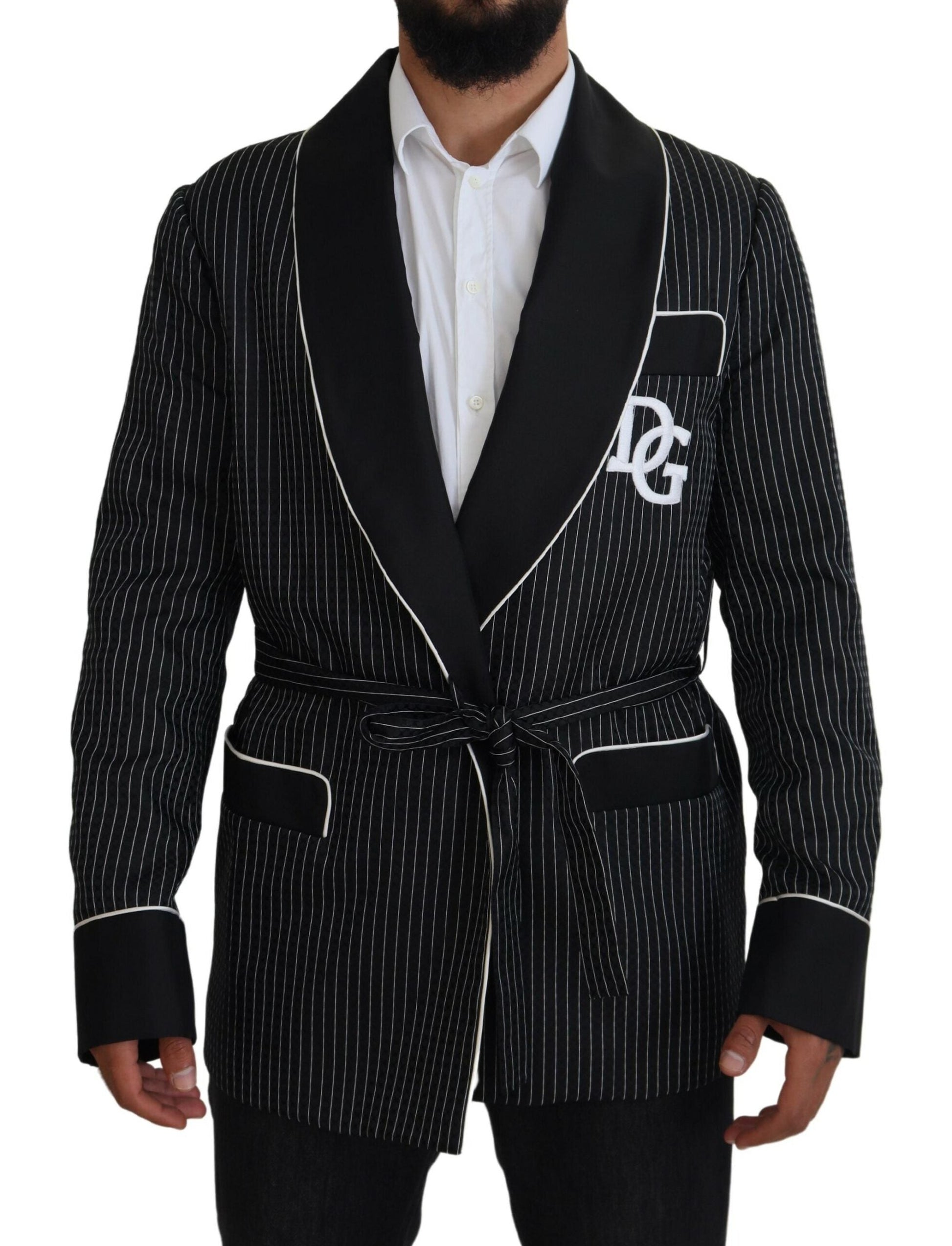 Dolce & Gabbana Black Robe Striped DG Patch Jacket Men Blazer