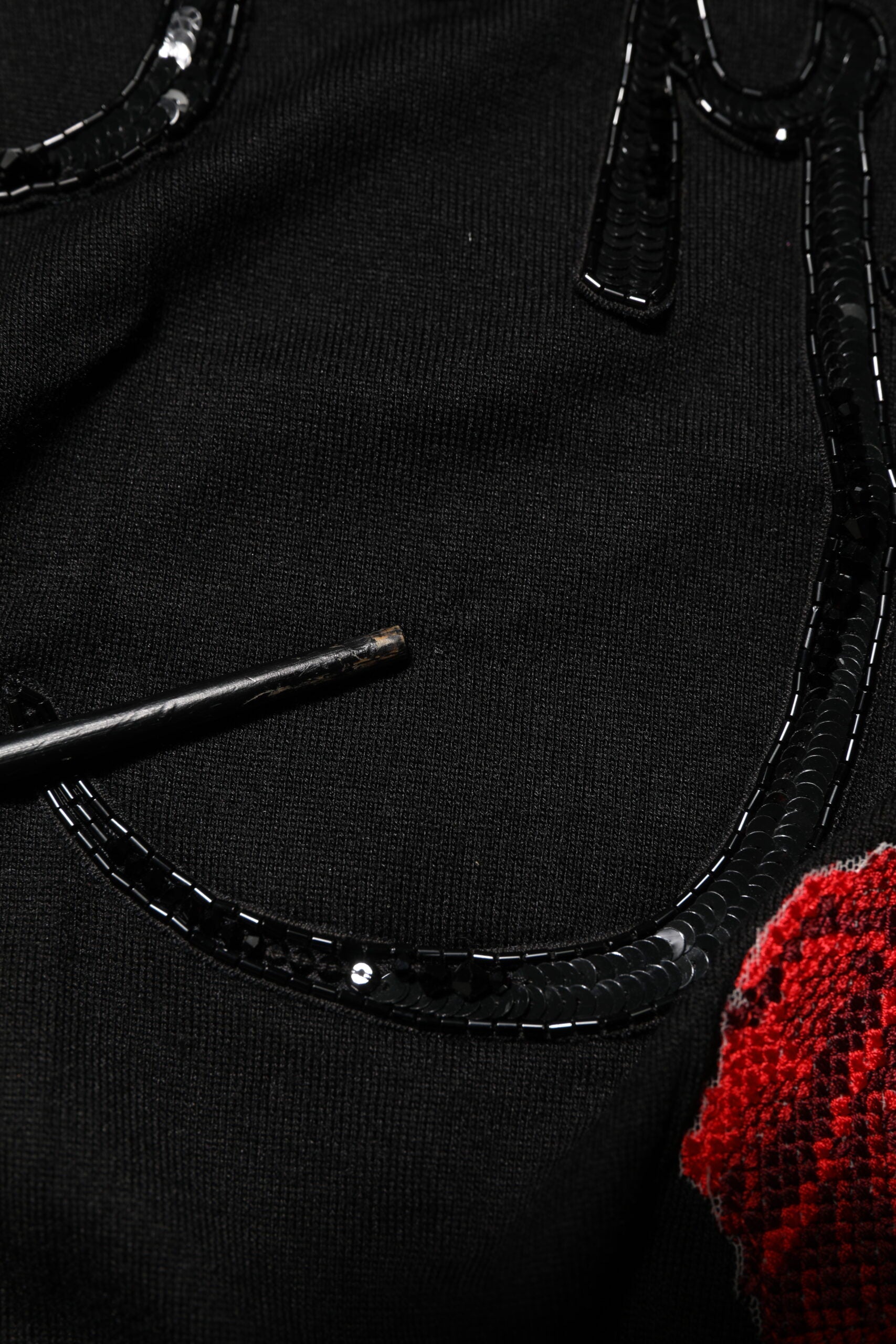 Dolce & Gabbana Black Rose Sequin Embellishments Blouse Top