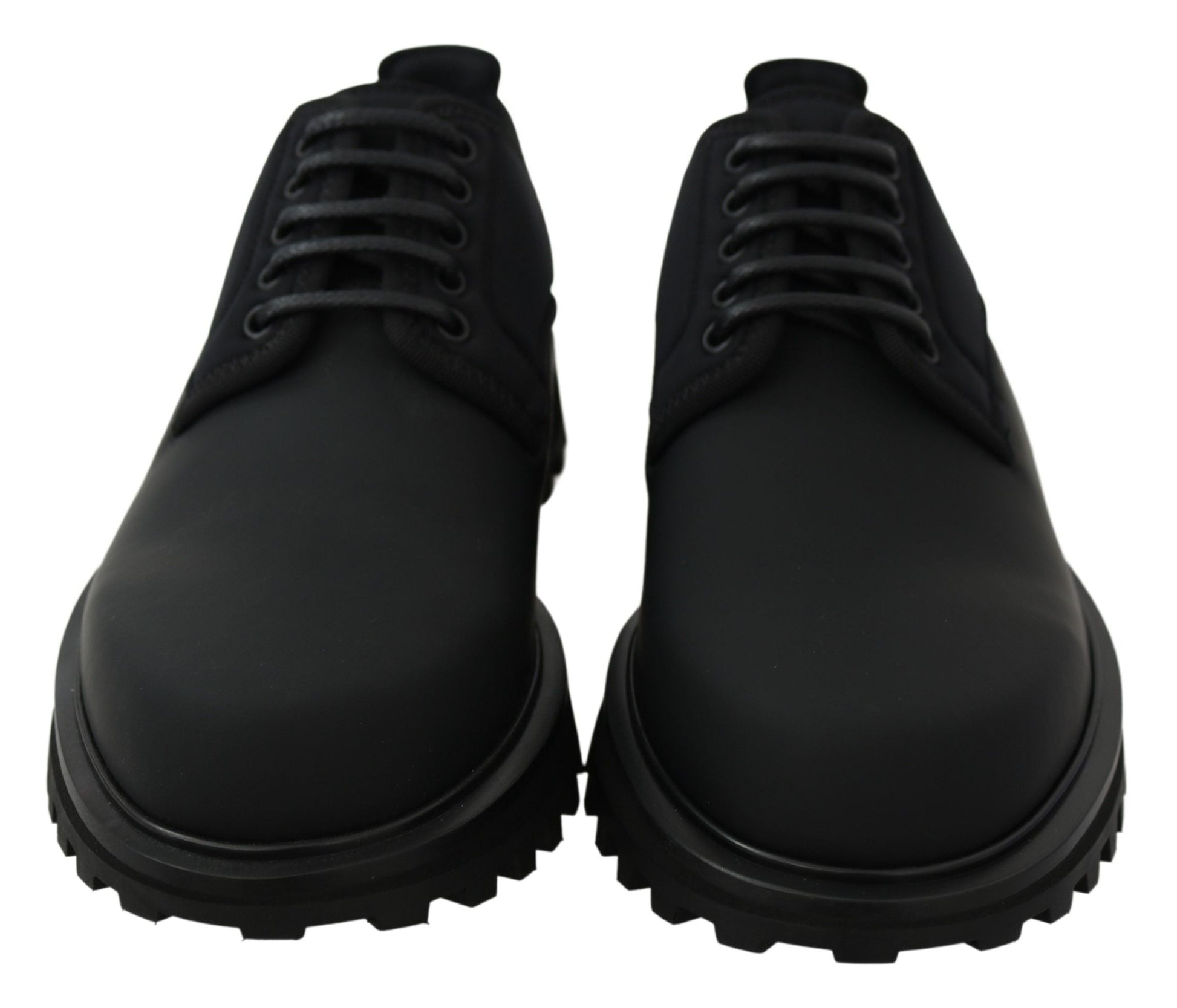 Dolce & Gabbana Black Rubberized Calfskin Chunky Derby Vulcano Shoes
