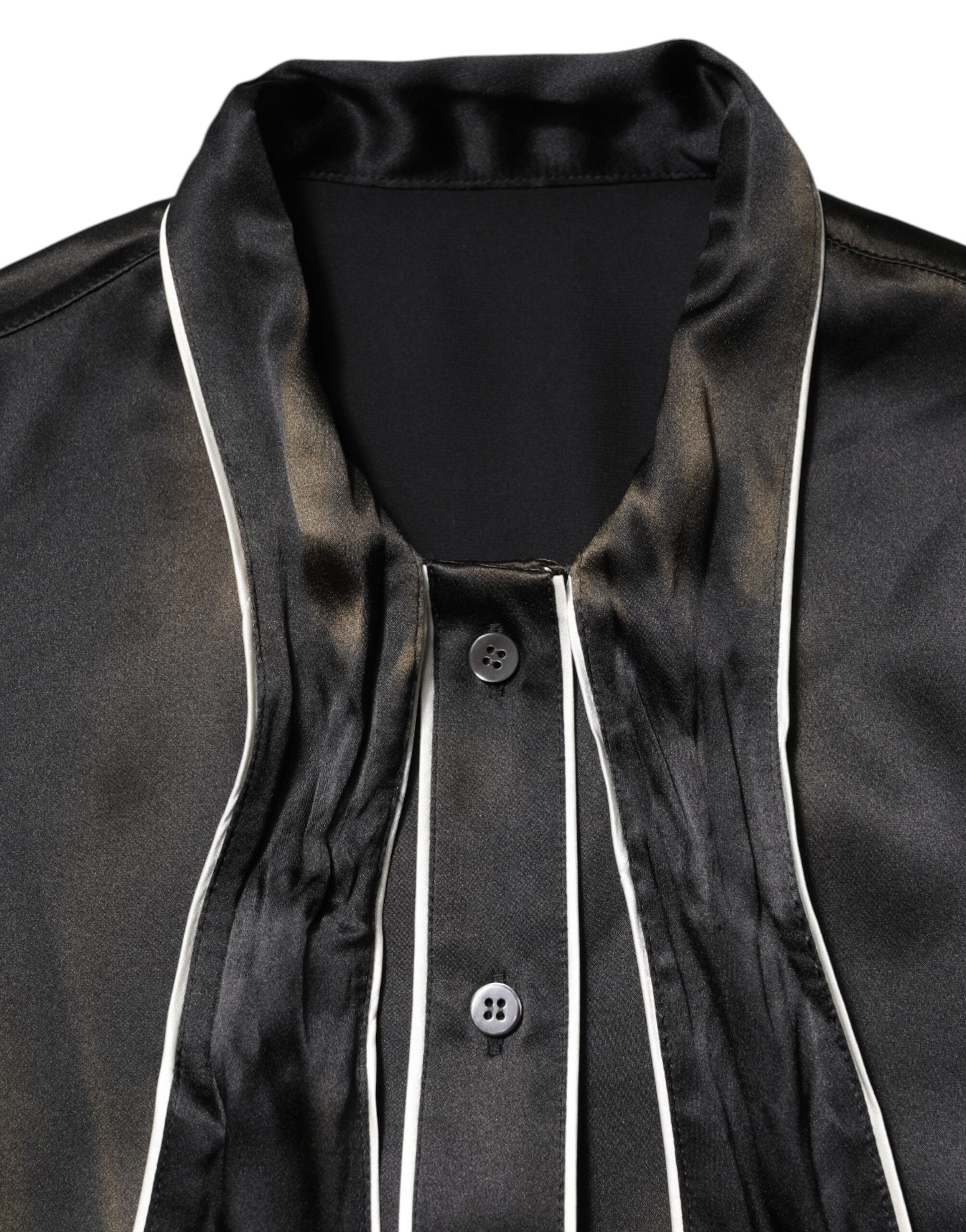 Dolce & Gabbana Black Silk Ascot Collared Button Blouse Top