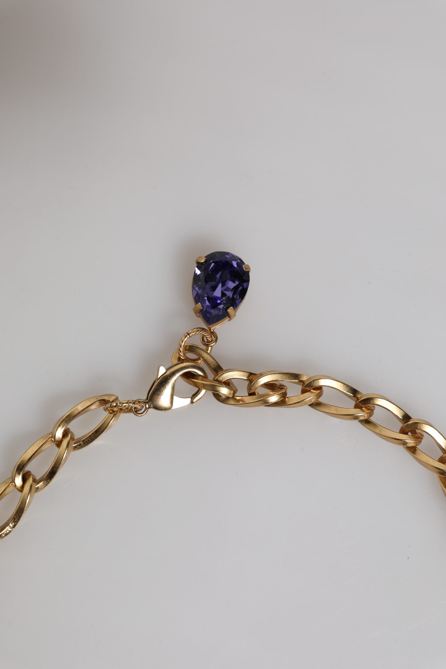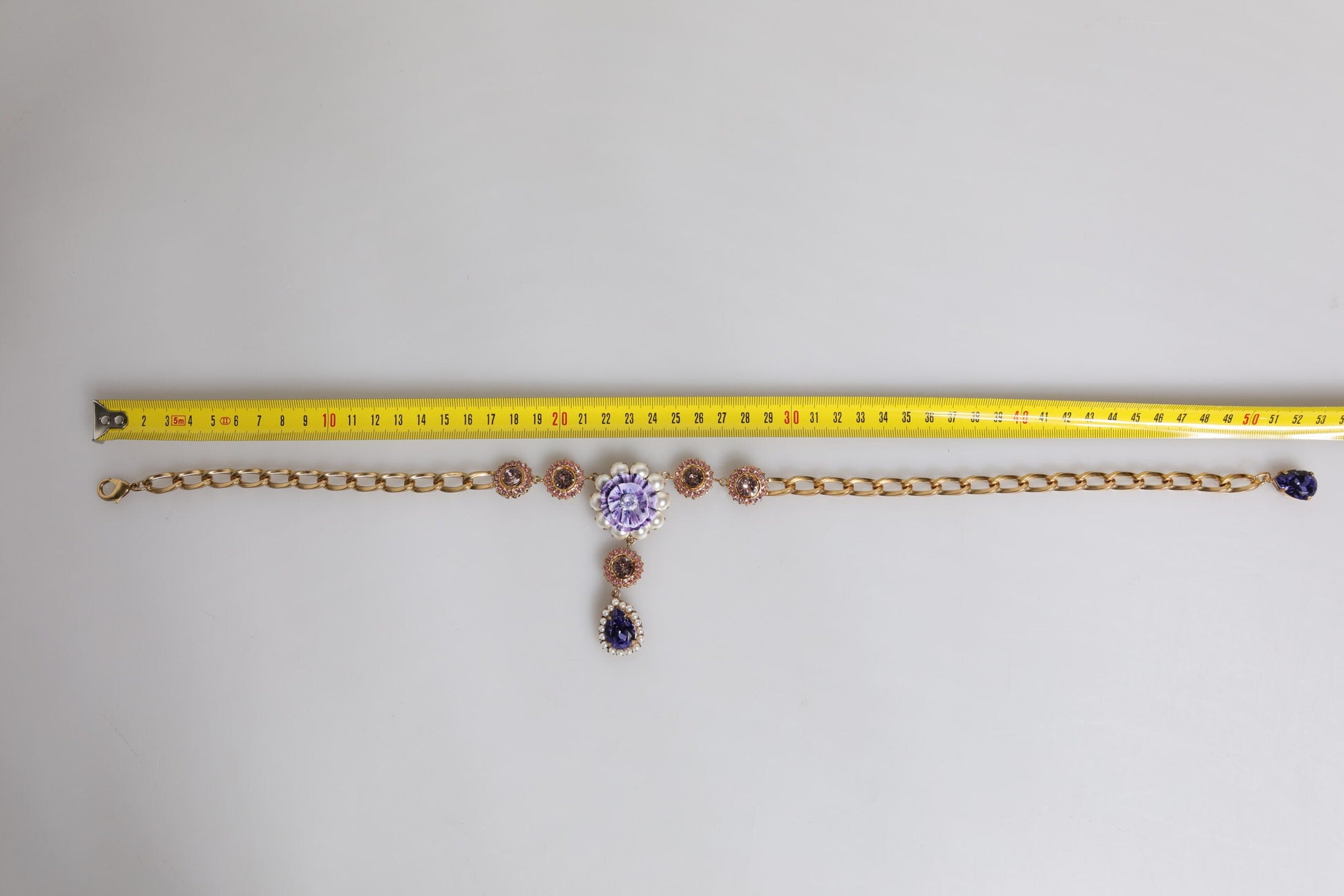 Dolce & Gabbana Gold Brass Floral Crystals Pearl Embellished Necklace