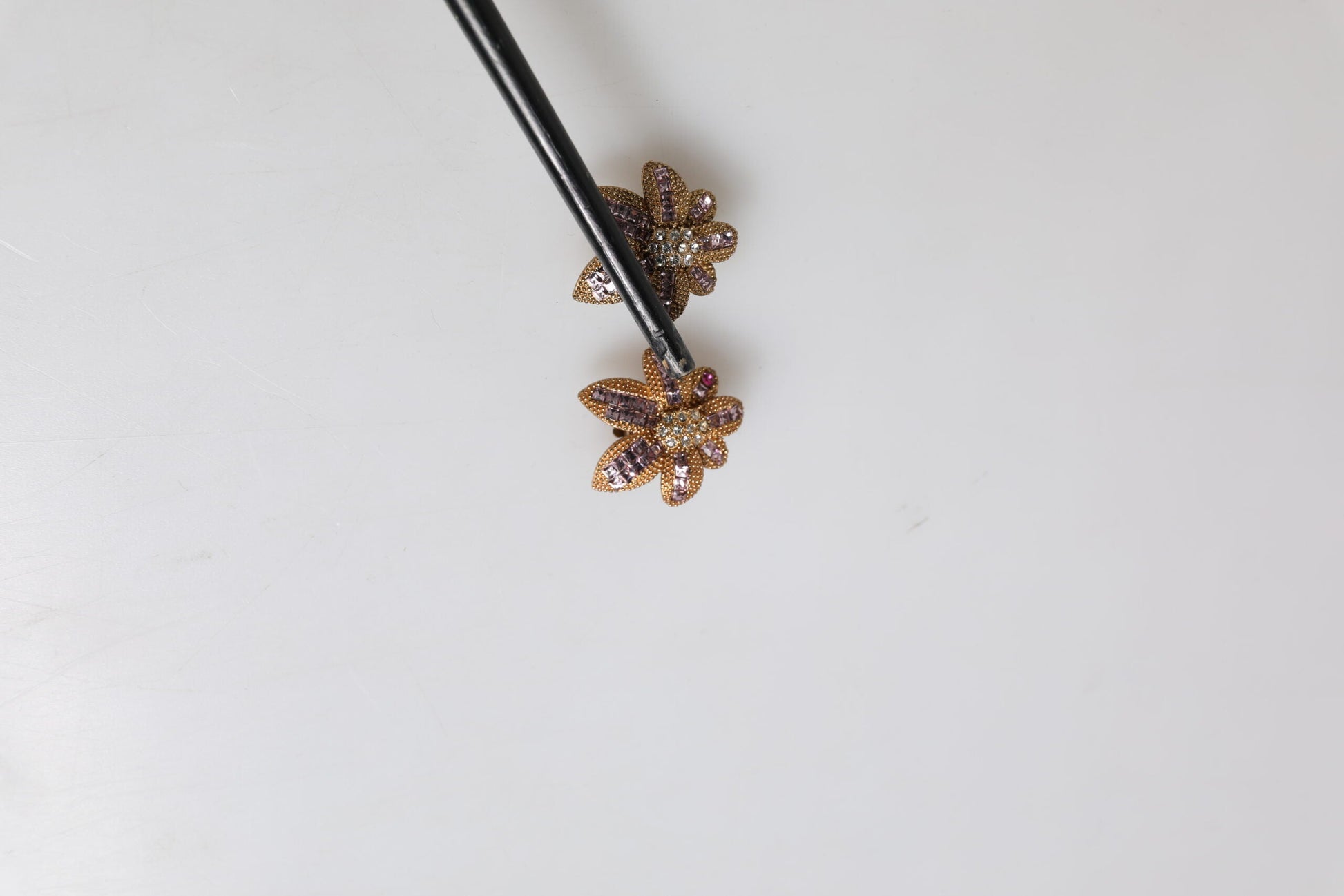 Dolce & Gabbana Gold Brass Purple Flower-Shaped Crystals Clip On Earrings