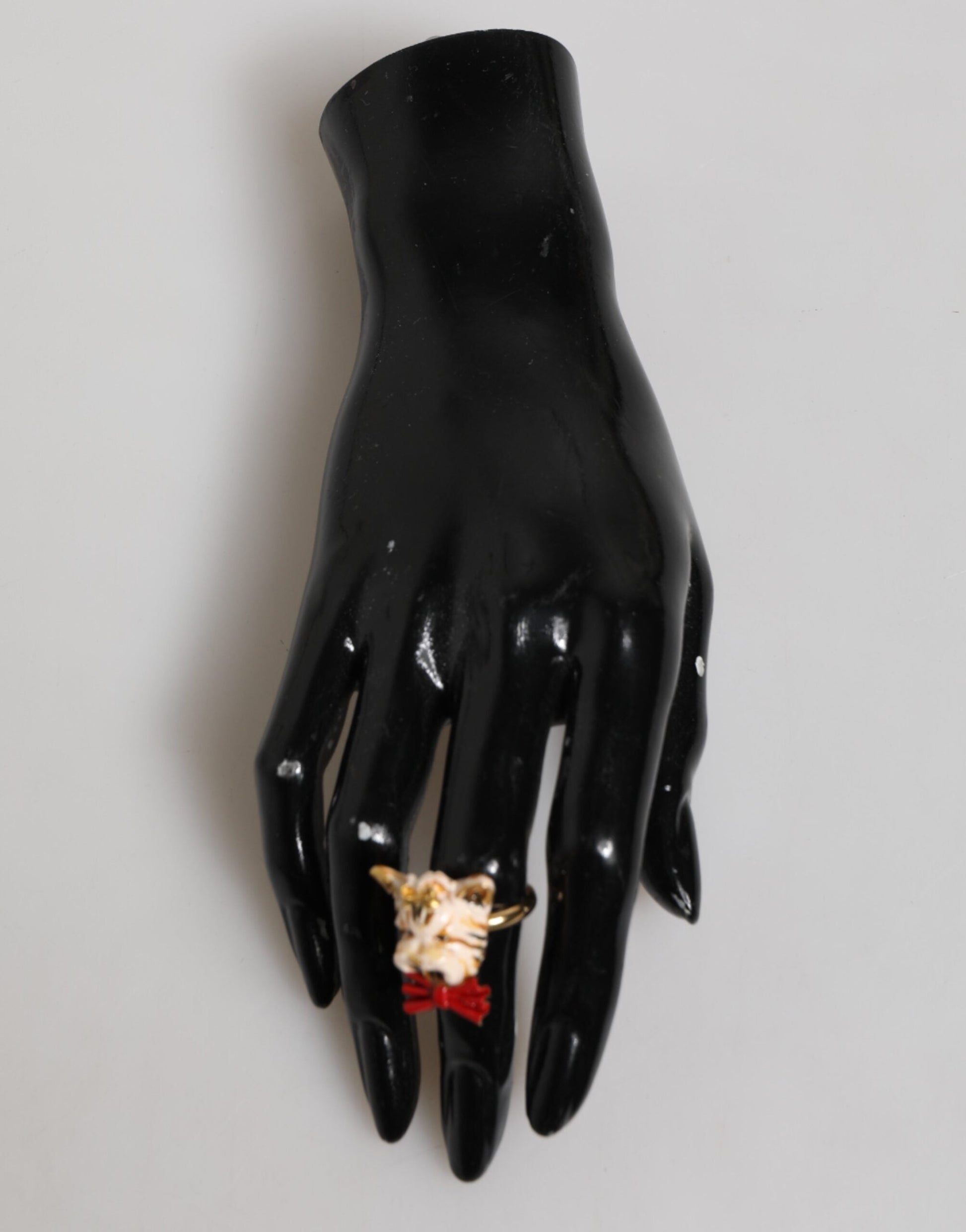 Dolce & Gabbana Gold Brass Resin Beige Dog Pet Accessory Ring