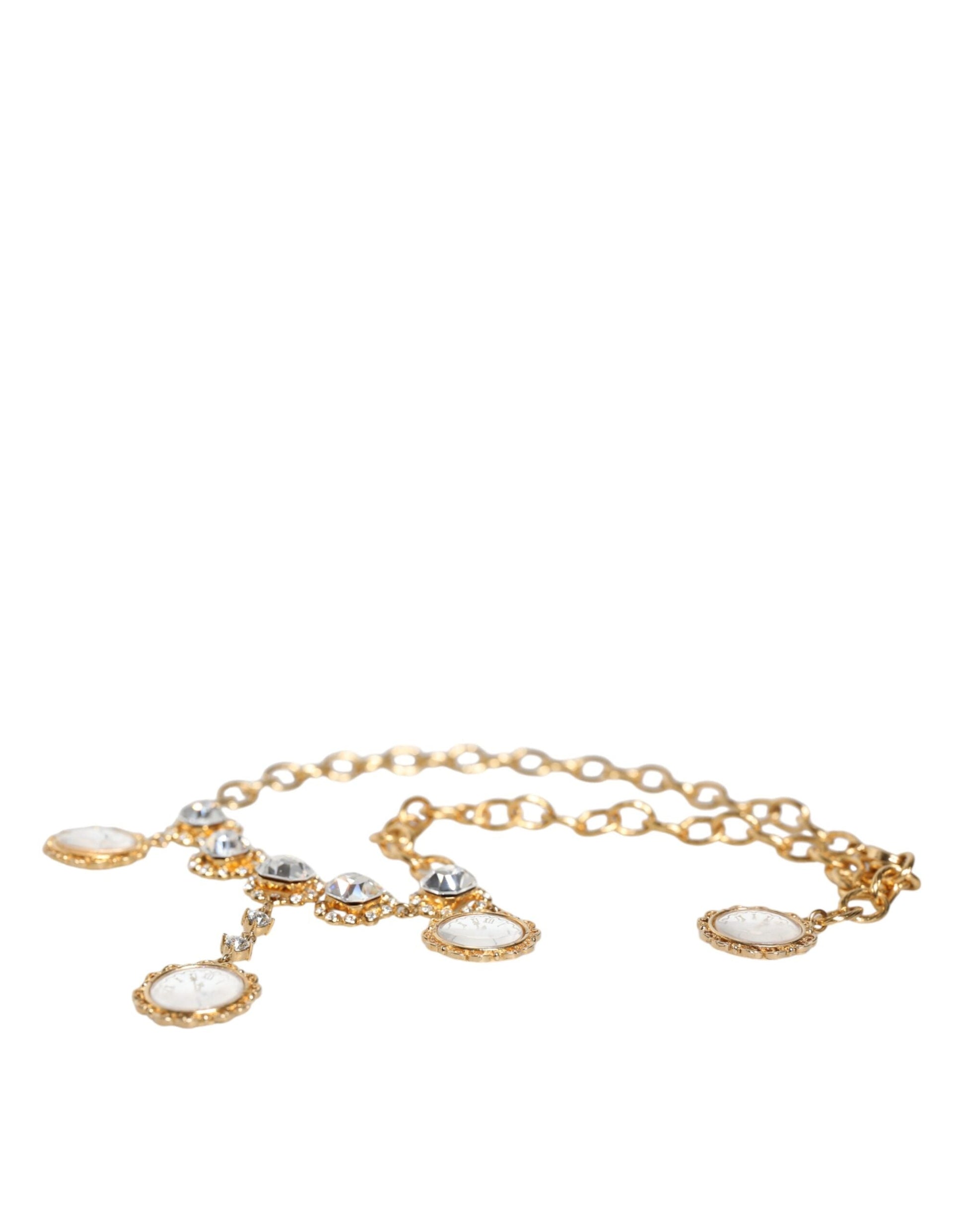 Dolce & Gabbana Gold Chain Brass Crystal Clock Statement Necklace