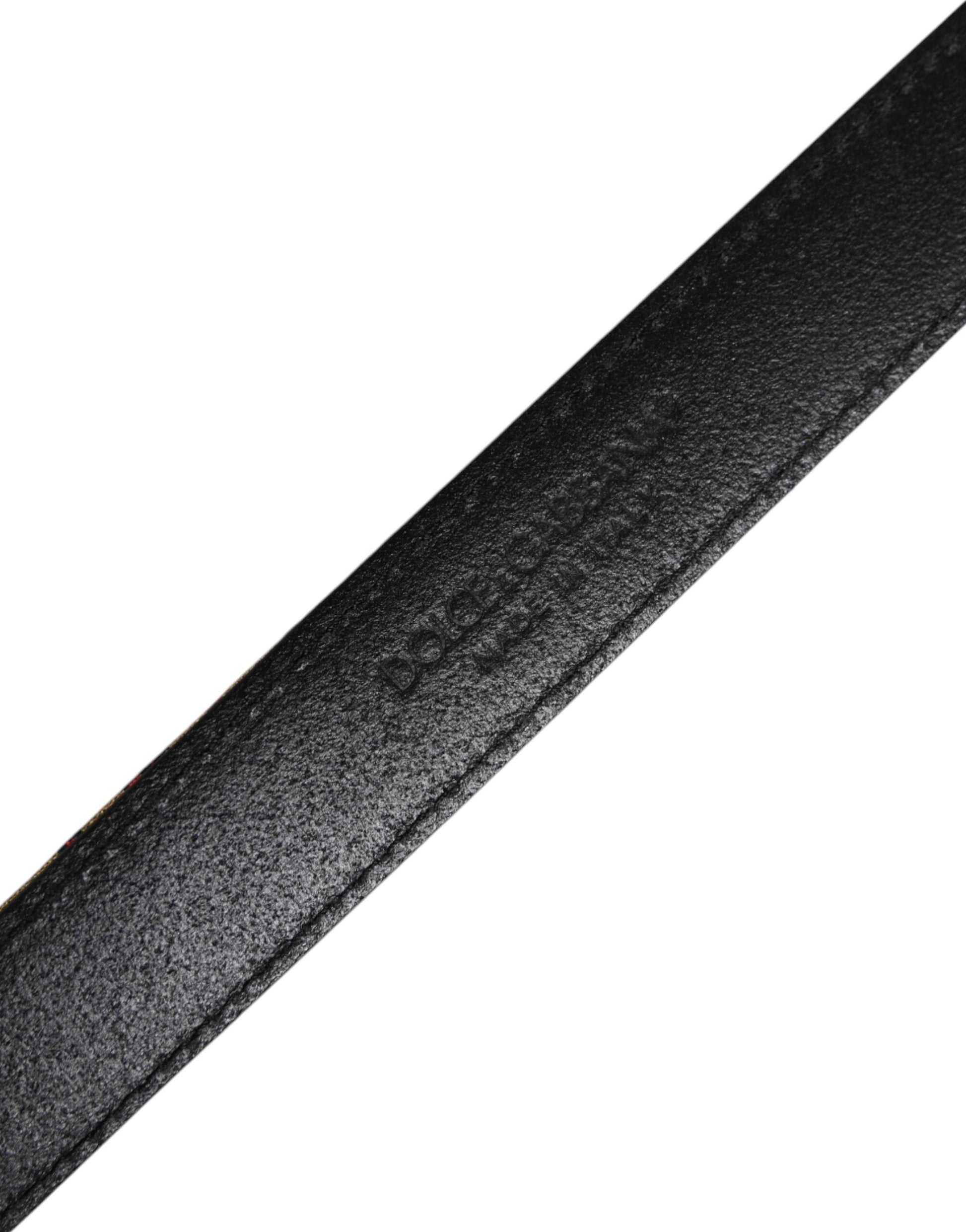 Dolce & Gabbana Gold Floral Jacquard Leather Metal Buckle Belt