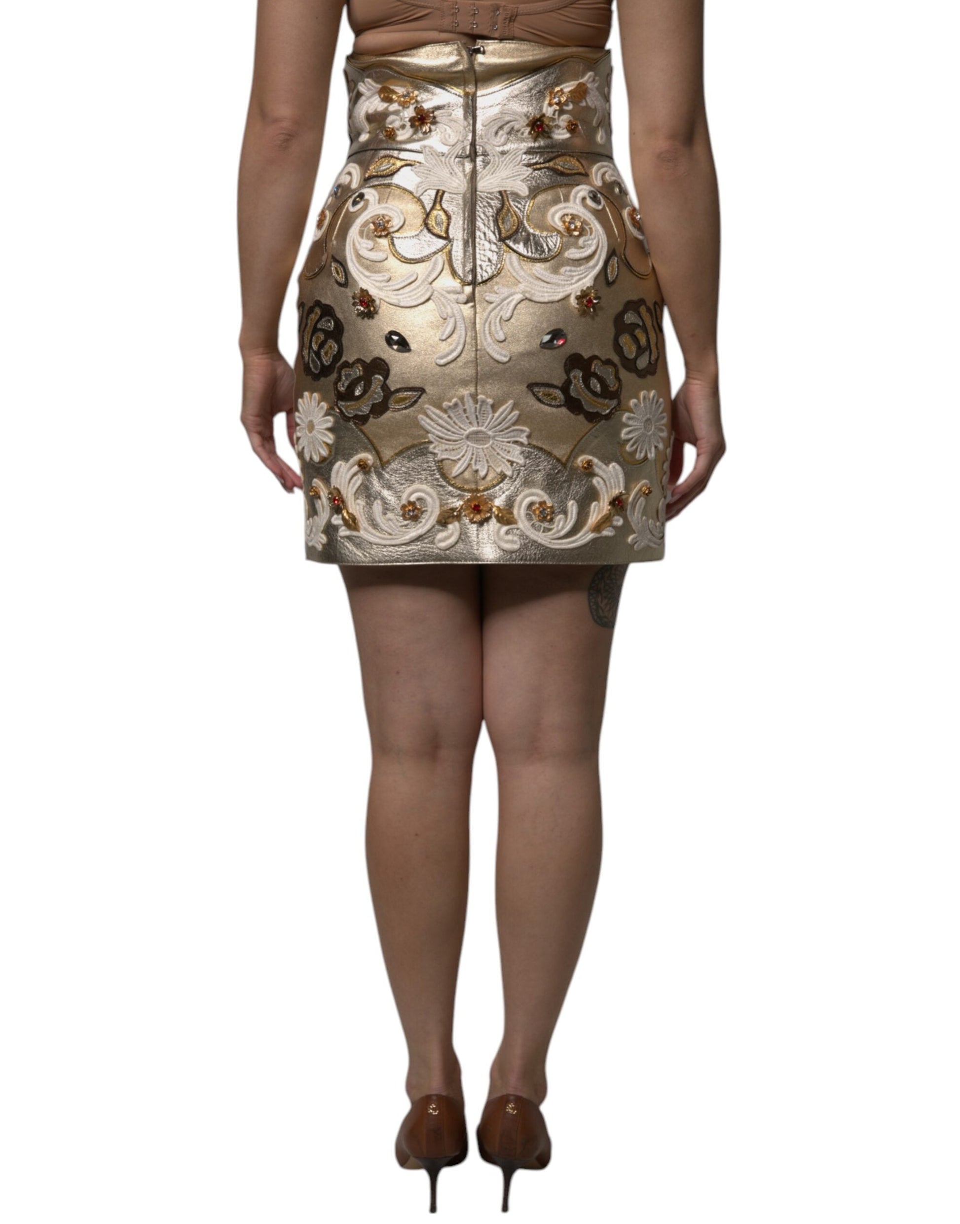 Dolce & Gabbana Gold Jacquard Embellished A-line Mini Skirt